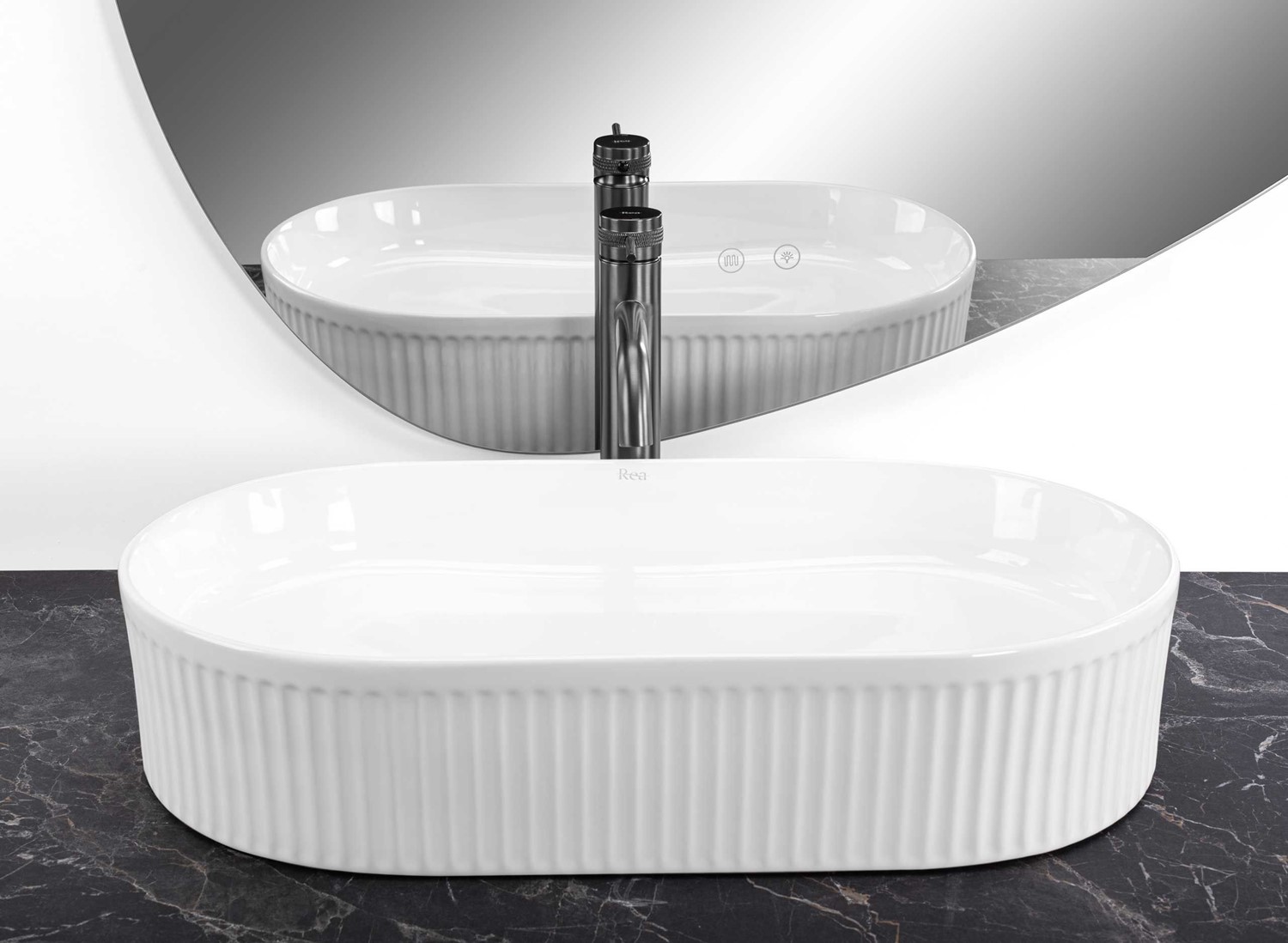 Umywalka nablatowa to doskonałe rozwiązanie dla osób, które chcą nadać swojej łazience nowoczesny i elegancki wygląd, jednocześnie dbając o funkcjonalność i wygodę użytkowania. Wykonana z wysokiej jakości ceramiki sanitarnej, umywalka ta gwarantuje długotrwałe użytkowanie i łatwość utrzymania w czystości. Jej minimalistyczny design sprawia, że pasuje do różnych stylów aranżacji, od nowoczesnych po klasyczne. Montaż nablatowy umywalki jest prosty i szybki, co pozwala na łatwą instalację w każdej łazience. Dodatkowo umywalka doskonale komponuje się z różnymi rodzajami blatów.