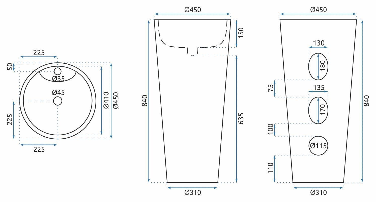 Umywalka Wolnostojąca ANYA GRANIT MATT Biały/Niebieski