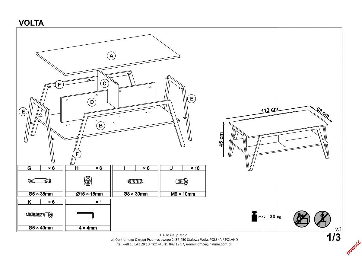 | Materiał wykonania | Płyta MDF, Okleina, Metal, Stal malowana proszkowo |