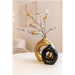 Wazon Felicia to elegancka dekoracja, która wprowadza do wnętrza luksusowy i ponadczasowy urok. Wykonany z aluminium i wykończony w eleganckim złotym kolorze, stanowi doskonały wybór do stylowych przestrzeni. Jego subtelny kształt i wyrafinowana forma doskonale wpisują się zarówno w nowoczesne, jak i klasyczne aranżacje. Dostępny również w czarnej wersji, daje możliwość dopasowania do różnych stylów wnętrz.