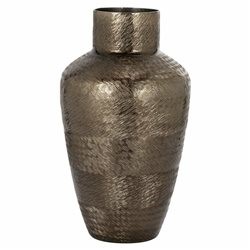 Wazon Joah to wyrafinowany element dekoracyjny, który wyróżnia się subtelnym, szczotkowanym wykończeniem i ciemnym dymionym metalem, nadając elegancki, ponadczasowy charakter każdemu wnętrzu. Doskonały zarówno jako wazon na kwiaty, jak i samodzielna ozdoba, wprowadza do przestrzeni nutę nowoczesnej elegancji. Dodatkowo dostępna jest większa wersja w złotym wykończeniu, co podkreśla luksusowy styl i pozwala na stworzenie harmonijnego zestawu dekoracyjnego.