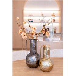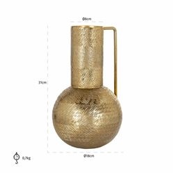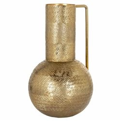 Wazon Leia to wyjątkowa dekoracja, która wnosi elegancję i ponadczasowy styl do każdego wnętrza. Wykonany z aluminium, zachwyca złotym wykończeniem i unikalnym kształtem z kulistą podstawą oraz delikatnym uchwytem. Doskonale sprawdzi się jako wazon na kwiaty lub samodzielna ozdoba, pasując do nowoczesnych i klasycznych aranżacji. Dostępność większej wersji w kolorze dymionym pozwala na dopasowanie do różnych przestrzeni, tworząc spójne i stylowe wnętrze. Idealny wybór dla miłośników luksusowych dodatków.