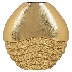 Wazon Roxy to luksusowy i funkcjonalny element dekoracyjny, który wyróżnia się wyrafinowanym wzornictwem inspirowanym naturą. Dzięki złotej, połyskliwej powierzchni oraz teksturalnym detalom stanowi efektowny akcent w każdym wnętrzu, niezależnie od stylu aranżacji. Wykonany z trwałego aluminium, wazon jest zarówno praktyczny, jak i elegancki, doskonale sprawdzając się jako naczynie na kwiaty lub samodzielna ozdoba. Idealny wybór dla miłośników piękna i jakości.