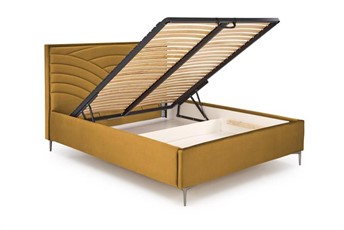 Wezgłowie W-3 do łóżka MODULO z pojemnikiem na pościel i podnoszonym stelażem, wymiary : 175/8/120cm, materiał: tkanina - velvet, kolor: musztardowy (Monolith 48), Do skompletowania kompletnego łóżka należy zamówić korpus łóżka, wezgłowie łóżka oraz nóźki do łóżka.