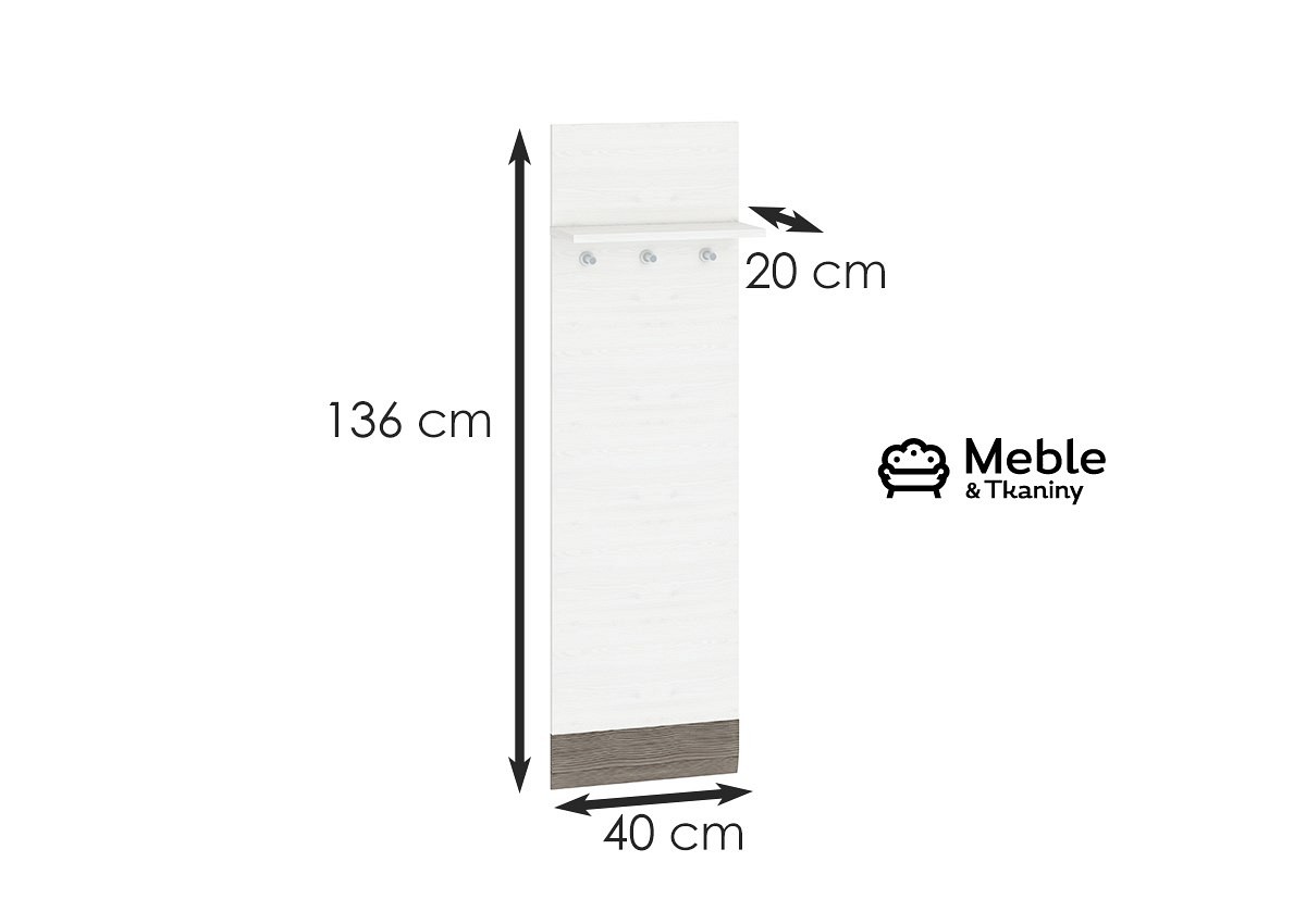 Elegancki wieszak w przedpokoju to prawdopodobnie najpraktyczniejszy i najskuteczniejszy sposób na to, by najpotrzebniejsza odzież wierzchnia była zawsze pod ręką. Model BLANCO 23 to przestrzeń na trzy okrycia oraz mała półka w sam raz na dodatki, takie jak czapka czy szal. Wieszak ten po zamontowaniu bezpośrednio przylega do ściany i tym samym pozwala na sporą oszczędność miejsca w stosunku do tradycyjnej szafy. Wykonano go z płyty laminowanej w kolorze newgray i sosna śnieżna, listwy z płyty MDF, natomiast jego obrzeża wykończone zostały okleiną ABS.