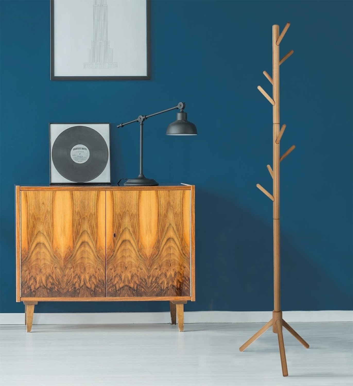 Wieszak bukowy Madura czarny to elegancki i praktyczny element, który idealnie wkomponuje się w nowoczesne wnętrza. Wykonany z wysokiej jakości drewna bukowego, charakteryzuje się solidnością oraz trwałością, co zapewnia długotrwałe użytkowanie. Wieszak Madura posiada osiem drewnianych haczyków, rozmieszczonych na różnych wysokościach, co pozwala na wygodne zawieszenie odzieży wierzchniej, torebek czy kapeluszy.Jego minimalistyczny design w głębokim czarnym kolorze dodaje przestrzeni stylu i wyrafinowania. Dzięki przemyślanej konstrukcji wieszak oferuje wygodne miejsce do zawieszania kurtek, płaszczy i akcesoriów, co ułatwia organizację i pomaga w utrzymaniu porządku.