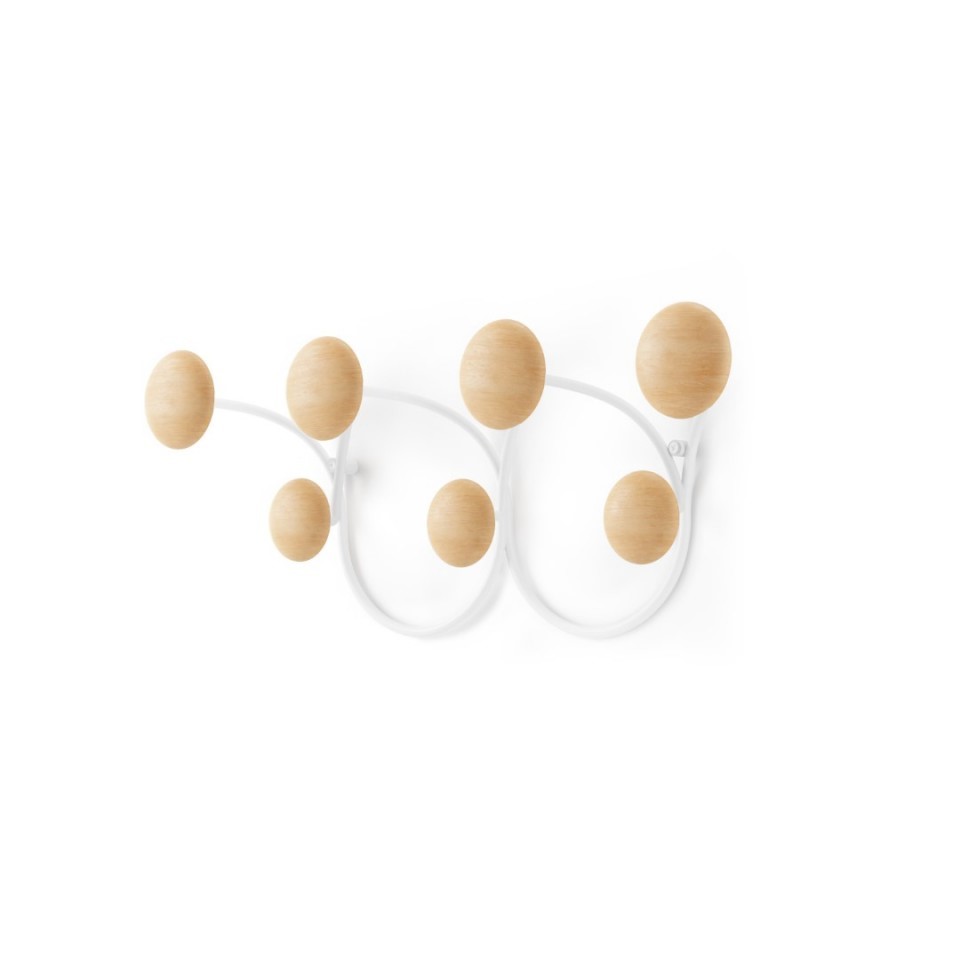 Wieszak DOTSY 7 stanowi zarówno praktyczne rozwiązanie do przechowywania ubrań, jak i subtelny element dekoracyjny do Twojej przestrzeni. Rama została wykonana z metalu a zakończenia z drewna. Będzie idealnym rozwiązaniem, aby zawiesić na nim kurtki, szaliki, torebki czy nakrycia głowy. Jego minimalistyczny design sprawia, że doskonale wpisuje się w nowoczesne i przytulne wnętrza. Do jego zamontowania wystarczą tylko dwa otwory, dzięki czemu ściana nie zostanie zniszczona.