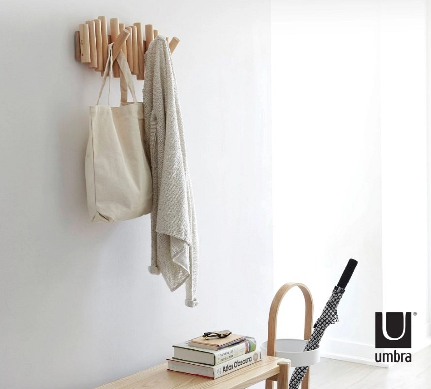 UMBRA Wieszak na ubrania PICKET Kolor naturalny. Dzięki sosnowemu kształtowi i kołkom, wieszak na sztachety wygląda jak ciekawa dekoracja. Dzięki 5 haczykom możesz powiesić kurtki, czapki, płaszcze itp. Montaż jest bardzo łatwy. Zestaw montażowy w zestawie.