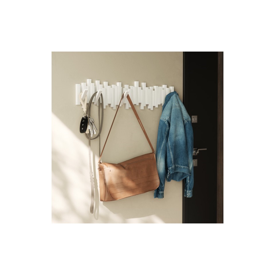 Wieszak ścienny STICKS 8 to nowoczesne rozwiązanie dla osób ceniących funkcjonalność i oryginalny design. Jego unikalna forma sprawia, że pełni nie tylko rolę praktyczną, ale również dekoracyjną. Dzięki montażowi na ścianie pozwala zaoszczędzić przestrzeń, co jest szczególnie istotne w mniejszych pomieszczeniach. Składane elementy umożliwiają wygodne zawieszanie ubrań, toreb czy akcesoriów, a gdy nie są używane – pozostają niemal niewidoczne. To idealny wybór do przedpokoju, sypialni lub biura, gdzie liczy się zarówno estetyka, jak i funkcjonalność.