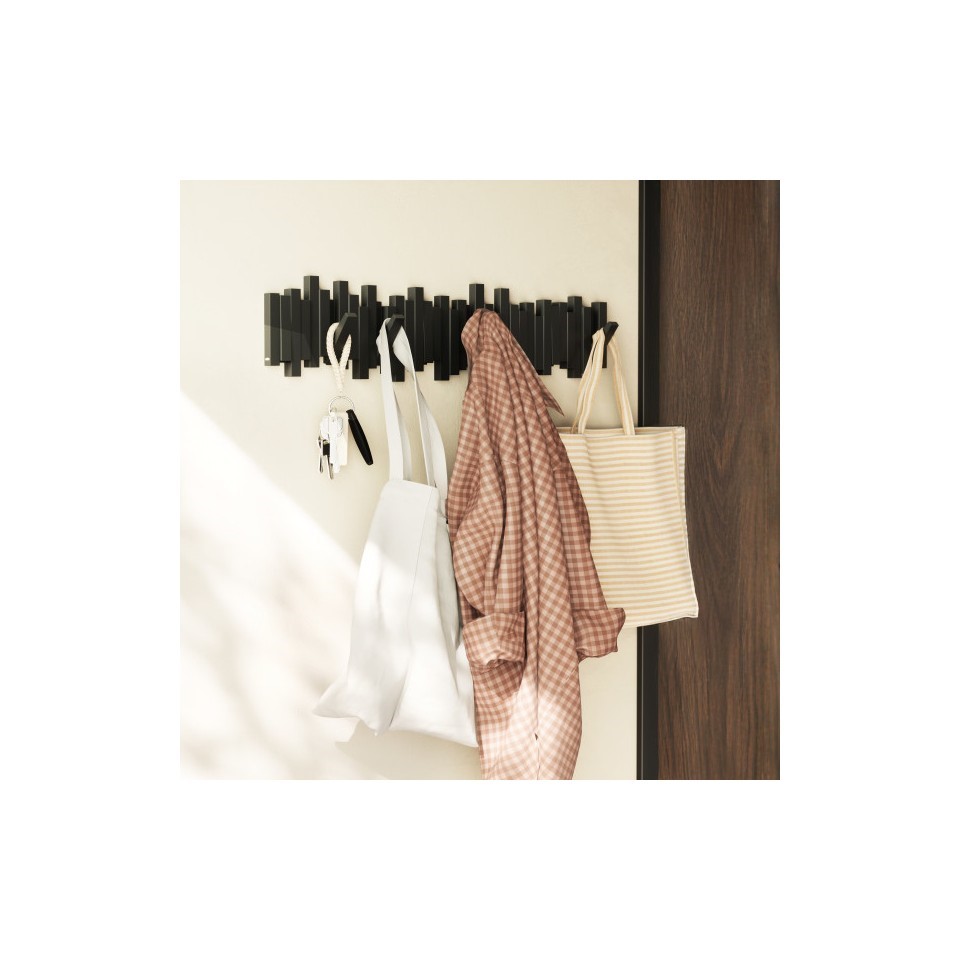 Wieszak ścienny STICKS 8 to nowoczesne rozwiązanie dla osób ceniących funkcjonalność i oryginalny design. Jego unikalna forma sprawia, że pełni nie tylko rolę praktyczną, ale również dekoracyjną. Dzięki montażowi na ścianie pozwala zaoszczędzić przestrzeń, co jest szczególnie istotne w mniejszych pomieszczeniach. Składane elementy umożliwiają wygodne zawieszanie ubrań, toreb czy akcesoriów, a gdy nie są używane – pozostają niemal niewidoczne. To idealny wybór do przedpokoju, sypialni lub biura, gdzie liczy się zarówno estetyka, jak i funkcjonalność.