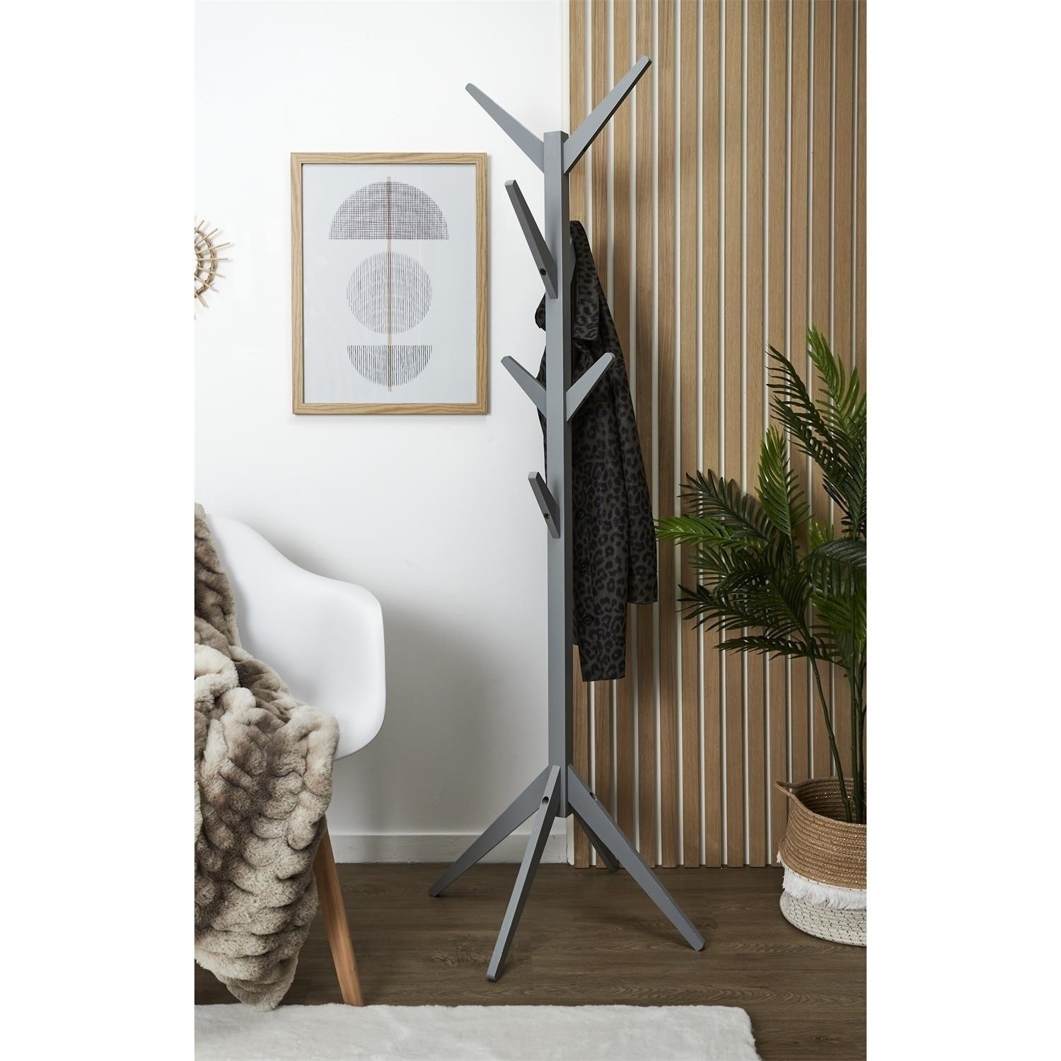 Wieszak Tree to funkcjonalny i estetyczny dodatek do każdego wnętrza. Inspirowany naturą kształt sprawia, że pełni nie tylko praktyczną, ale i dekoracyjną rolę. Dzięki solidnej konstrukcji z łatwością utrzyma płaszcze, kurtki i akcesoria, a szeroka gama kolorystyczna – od naturalnego drewna, przez czarny i biały, po szary – umożliwia dopasowanie do każdego stylu wnętrza. To praktyczne rozwiązanie, które wprowadza do przestrzeni ład i harmonię.