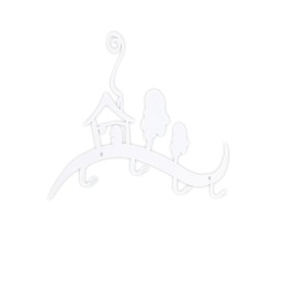 Wieszak ścienny Domek jest idealnym rozwiązaniem do przedpokoju. Stylowy wieszak z motywem domku oraz drzew ociepli każde wnętrze i pomoże stworzyć przyjazną atmosferę mieszkania. Wycinane laserowo elementy wieszaka są bardzo trwałe, odporne na zarysowania oraz zabrudzenia. Na pofalowanej listwie wieszaka zostały umieszczone 4 haki , o obciążeniu 3kg każdy, na których można powiesić klucze, torebki lub kurtki. Listwa dostępna jest w dwóch kolorach. Maksymalne obciążenie listwy to 12kg. Do wieszaka załączany jest zestaw montażowy, który składa się z kołków, zaślepek i śrubek. Wysokość: 28cm Szerokość: 41cm Max. ilość sztuk w kartonie:1 Wymiary kartonu:35cm x 49cm x 4cm Waga opakowania: 2kg