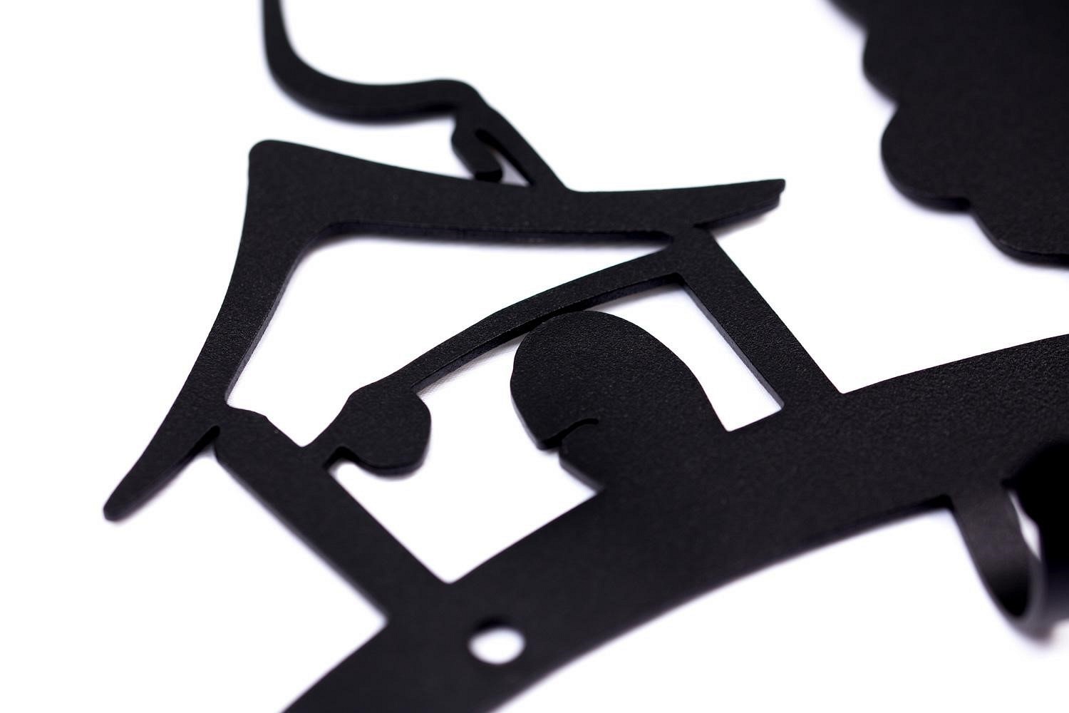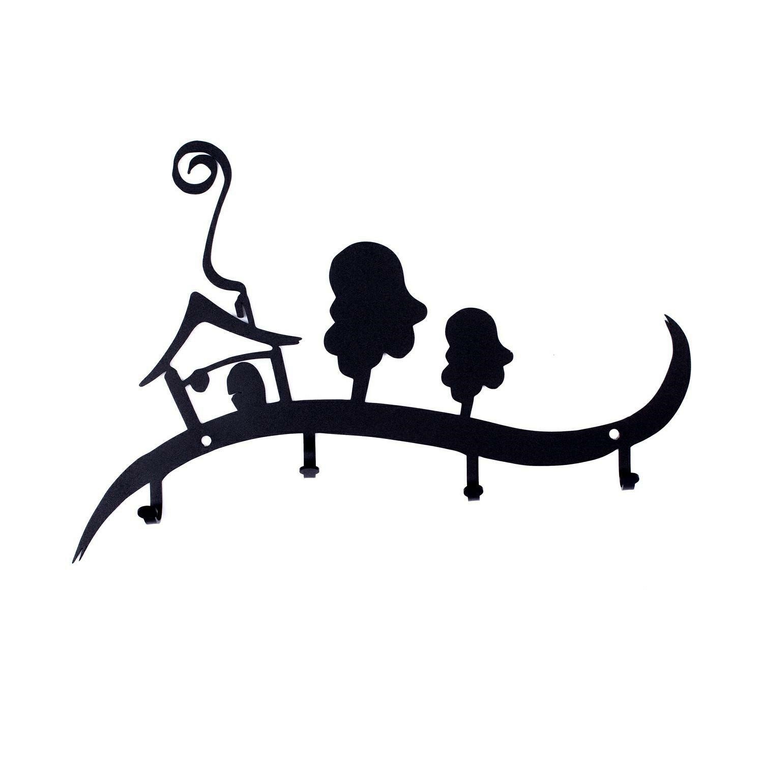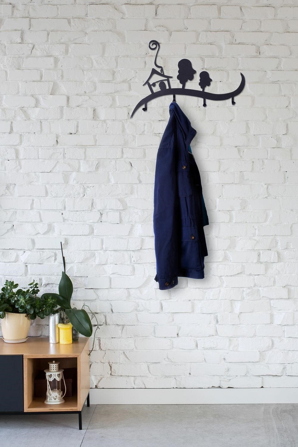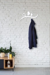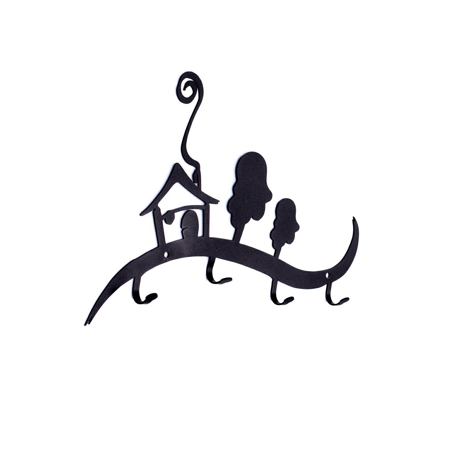 Wieszak ścienny Domek jest idealnym rozwiązaniem do przedpokoju. Stylowy wieszak z motywem domku oraz drzew ociepli każde wnętrze i pomoże stworzyć przyjazną atmosferę mieszkania. Wycinane laserowo elementy wieszaka są bardzo trwałe, odporne na zarysowania oraz zabrudzenia. Na pofalowanej listwie wieszaka zostały umieszczone 4 haki , o obciążeniu 3kg każdy, na których można powiesić klucze, torebki lub kurtki. Listwa dostępna jest w dwóch kolorach. Maksymalne obciążenie listwy to 12kg. Do wieszaka załączany jest zestaw montażowy, który składa się z kołków, zaślepek i śrubek. Wysokość: 28cm Szerokość: 41cm Max. ilość sztuk w kartonie:1 Wymiary kartonu:35cm x 49cm x 4cm Waga opakowania: 2kg