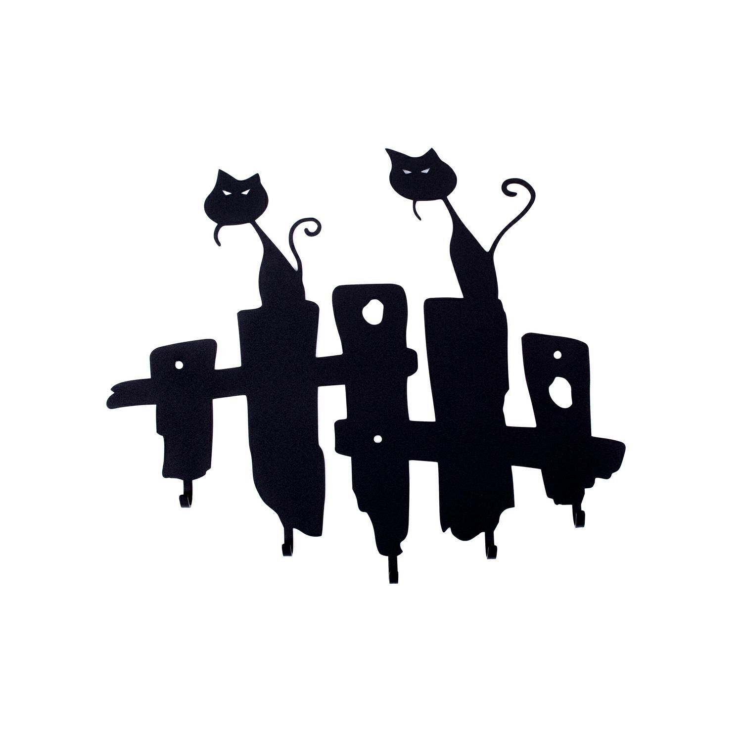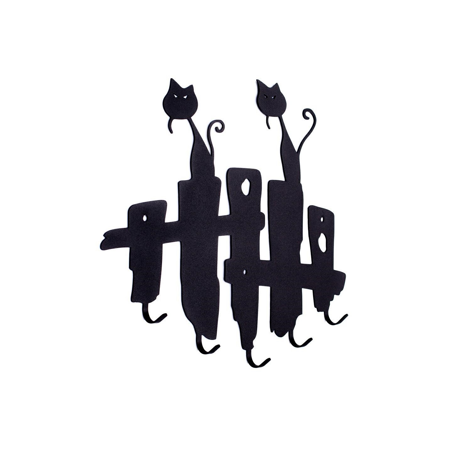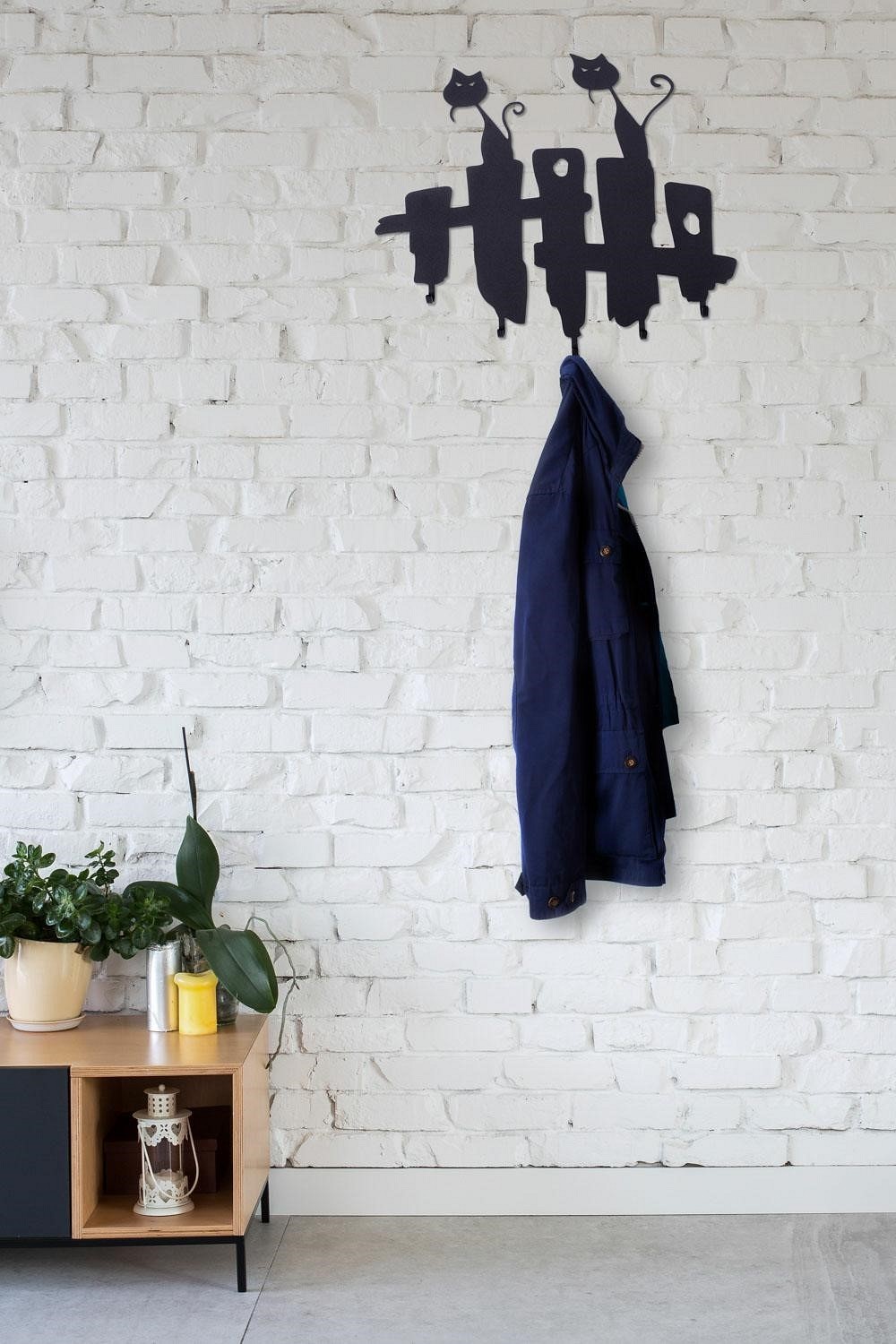 Wieszak ścienny Koty to stylowe rozwiązanie do przedpokoju, holu lub poczekalni. Wycięty laserowo wzór przedstawiający koty na płocie, nada uroku każdemu wnętrzu. Stalowy malowany proszkowo wieszak jest uniwersalny oraz odporny na uszkodzenia. Matowe wykończenie dodaje listwie stylu. Dzięki 5 haczykom o udźwigu do 3kg każdy, możemy powiesić na wieszaku klucze, kurtki lub nawet torby. Produkt dostępny jest w dwóch kolorach co zwiększa jego możliwości aranżacyjne. Maksymalne obciążenie to 15kg. Do wieszaka załączany jest zestaw montażowy, który składa się z kołków, zaślepek i śrubek.
