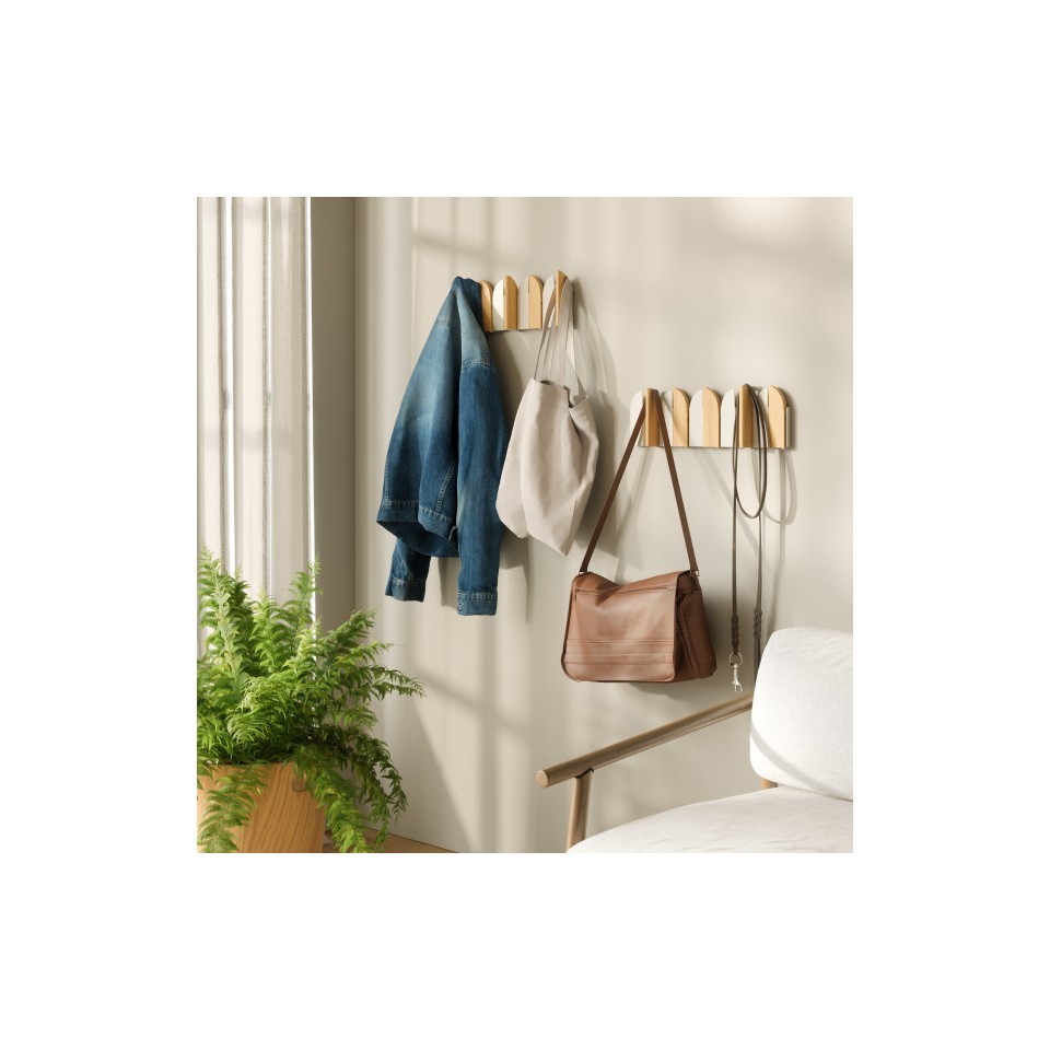 Wieszak ścienny SALOON to praktyczne rozwiązanie do organizacji przestrzeni w przedpokoju, łazience lub sypialni. Dzięki kompaktowej konstrukcji nie zajmuje dużo miejsca, a jednocześnie oferuje wygodne przechowywanie ubrań i dodatków. Przemyślany układ haczyków pozwala na efektywne wykorzystanie dostępnej powierzchni, co jest szczególnie ważne w mniejszych wnętrzach. Nowoczesny design sprawia, że wieszak pełni również funkcję dekoracyjną, uzupełniając aranżację pomieszczenia. To połączenie estetyki i funkcjonalności w codziennym użytkowaniu.