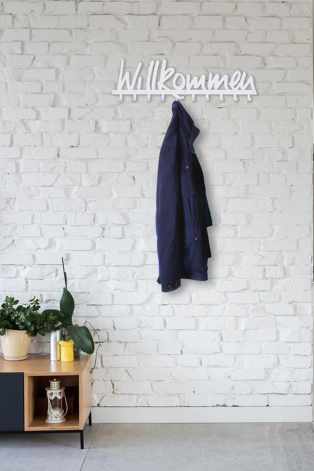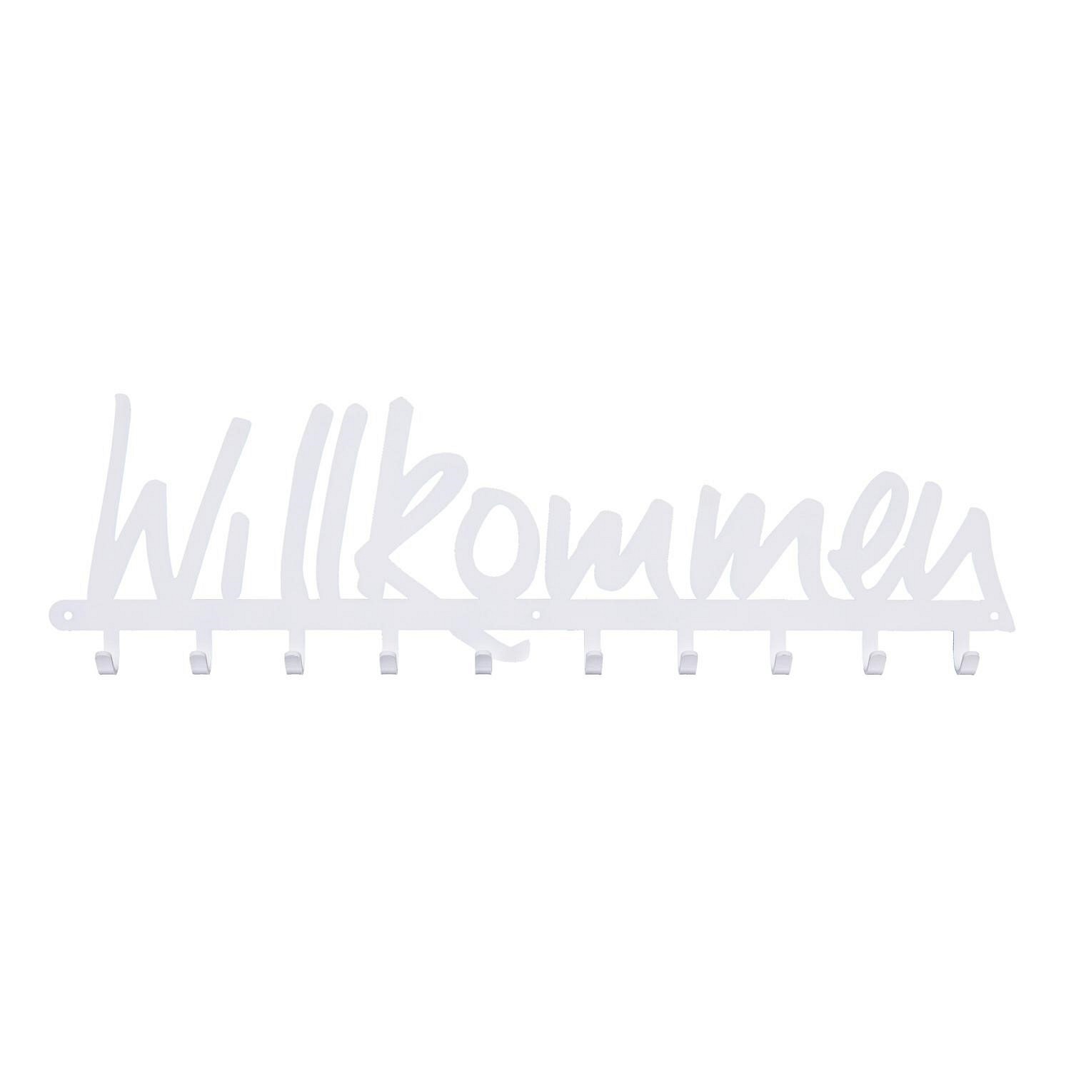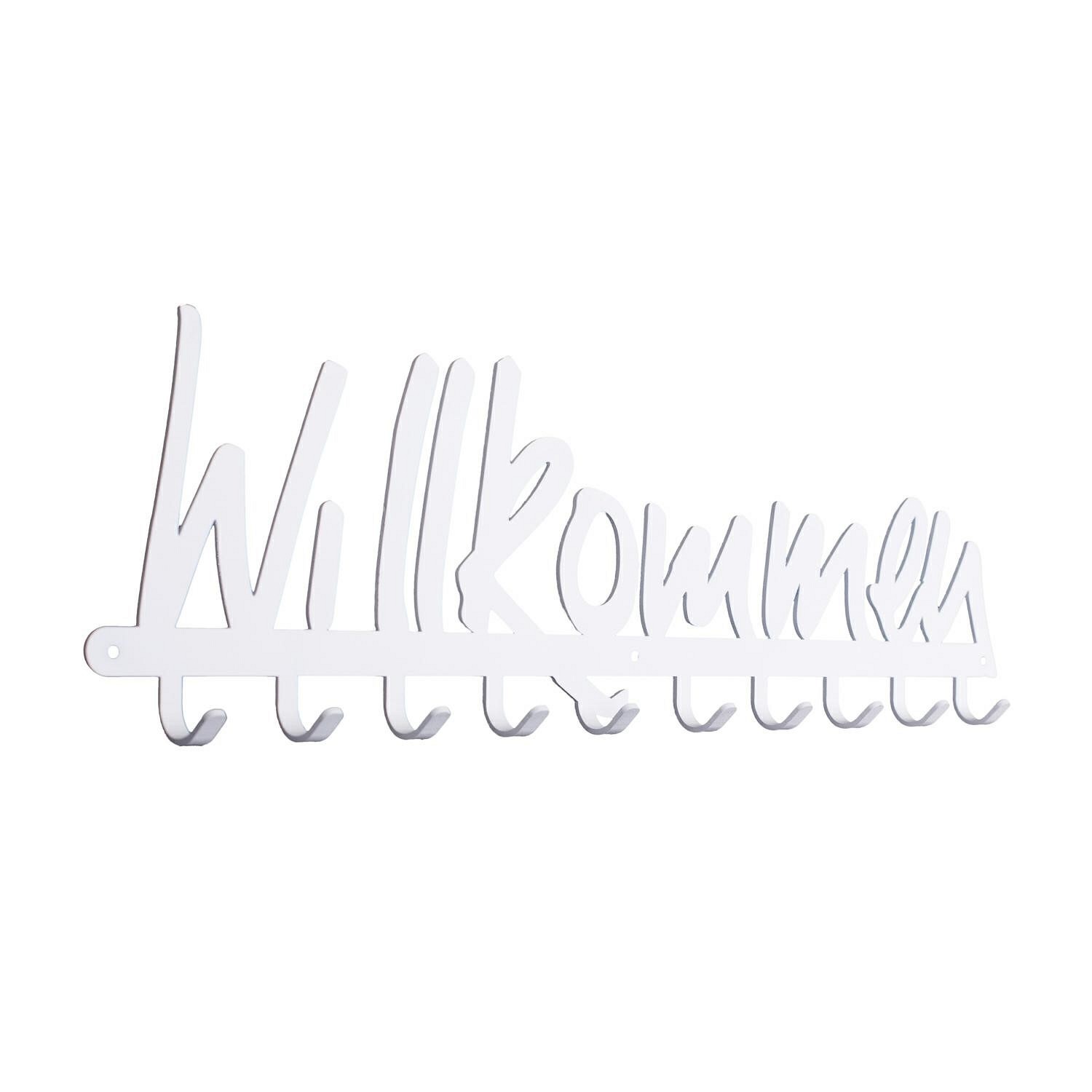 Wieszak ścienny Willkommen to nowoczesne rozwiązanie do przedpokoju, holu lub poczekalni. Jego precyzyjnie wycięty laserowo wzór, z napisem witającym gości, nada uroku każdemu wnętrzu. Stalowy malowany proszkowo wieszak jest uniwersalny oraz odporny na uszkodzenia. Matowe wykończenie dodaje listwie stylu. Dzięki aż 9 haczykom o udźwigu do 3kg każdy, możemy powiesić na wieszaku klucze, kurtki lub nawet torby. Produkt dostępny jest w dwóch kolorach co zwiększa jego możliwości aranżacyjne. Maksymalne obciążenie to 27kg. Do wieszaka załączany jest zestaw montażowy, który składa się z kołków, zaślepek i śrubek.