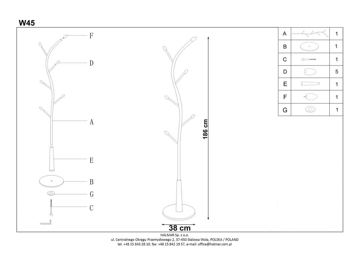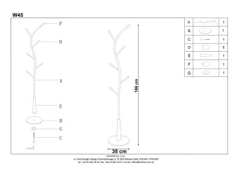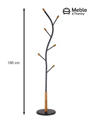 W-45 to piękny bestseller. Jego prostota zachwyca najbardziej sceptycznych klientów. Podstawa stworzona z kamienia naturalnego idealnie komponuje się z wyprofilowanym stelażem wykonanym ze stali malowanej proszkowo. Całość dopełnia drewno lite, które dodaje wieszakowi wymaganego prestiżu.
