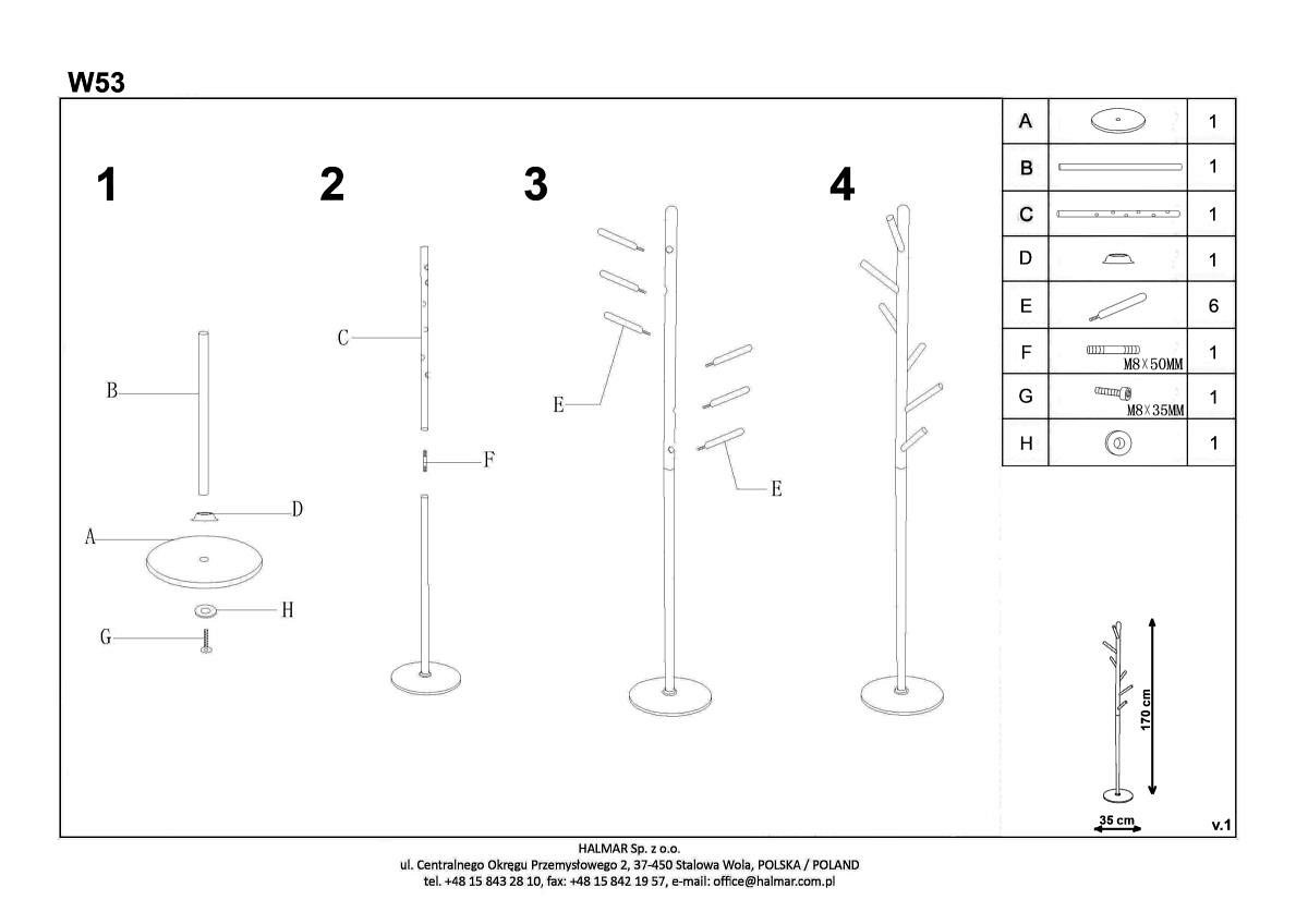 Wieszak LETA 174cm Srebrny/BiałyWieszak LETA 174cm Czarny/Chrom