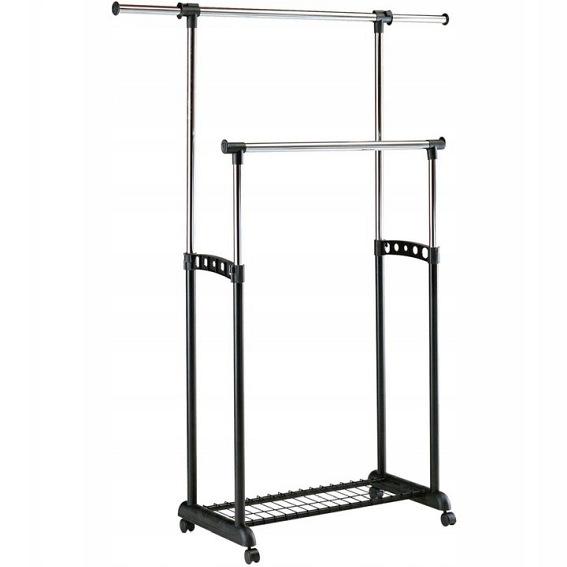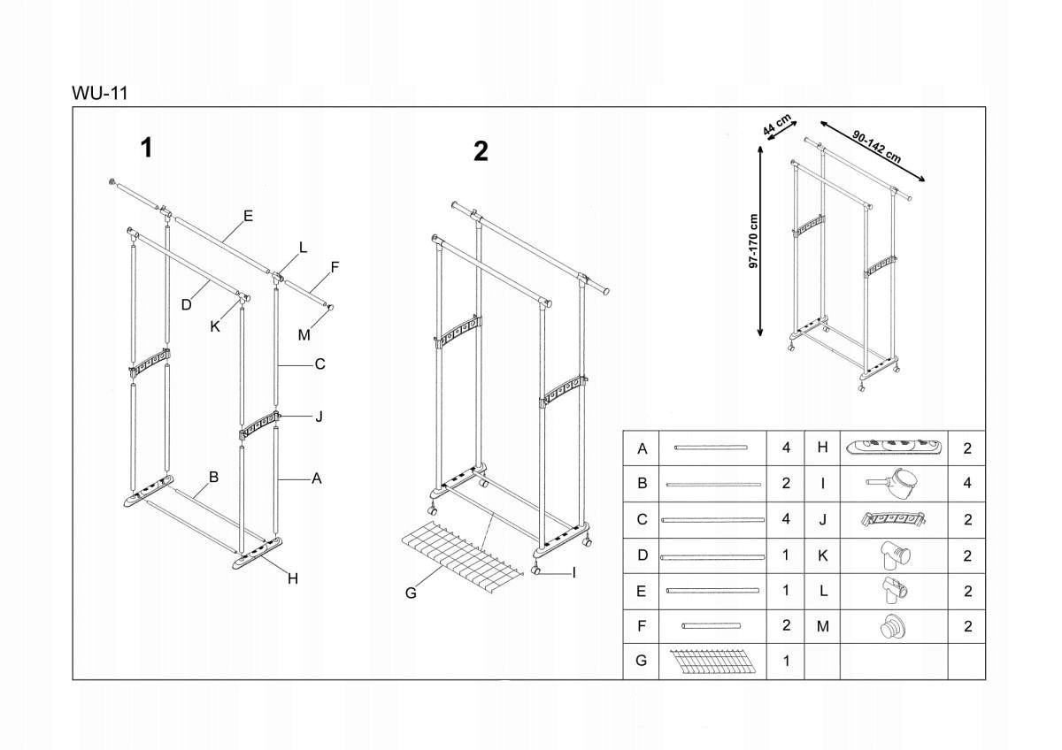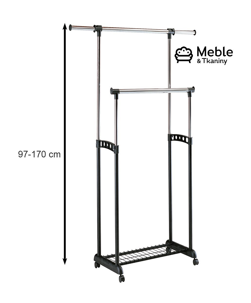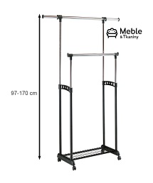 WU-11 to doskonała propozycja dla lokali usługowych z branży modowej. Lekka i mobilna (dzięki zamontowanym kółkom) konstrukcja wykonana jest z plastiku i stali chromowanej. Górne rurki pomieszczą słuszną ilość kreacji. Dodatkowym atutem jest regulacja wysokości i szerokości.