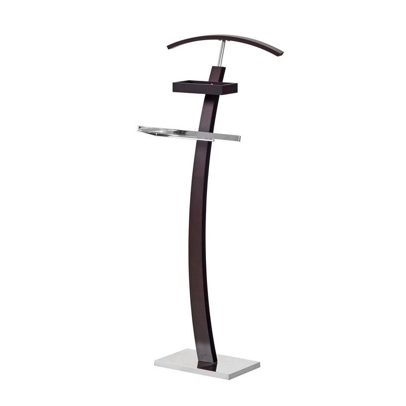 WU-13 to nowoczesna i zarazem elegancka propozycja wieszaka na odzież galową. Wyprofilowany stelaż wykonany z sklejki giętej wyposażono w górny wieszak na marynarkę i dolny na spodnie. Dodatkiem atutem jest półka na niewielkie akcesoria tj. spinki.