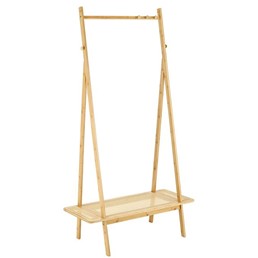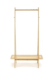 Wieszak WU-33 to nie tylko praktyczny, ale również estetyczny element wyposażenia garderoby czy sypialni. Bambusowe drewno, z którego jest wykonany, jest nie tylko trwałe i mocne, ale również bardzo eleganckie. Naturalny kolor bambusa pasuje do wielu stylów wnętrzarskich i wprowadza do pomieszczenia ciepłą i przyjemną atmosferę. Haki do zawieszania WU-33 montowane są po bokach konstrukcji oprócz drążka, co pozwala na jeszcze większe podwieszenie. Złote wykończenie dodaje elegancji wieszakowi i czyni go oryginalnym. Dodatkowym atutem tego produktu jest półka wykonana z naturalnego rattanu. To idealne miejsce do przechowywania domowych kapci lub innych butów, które chcemy mieć pod ręką.