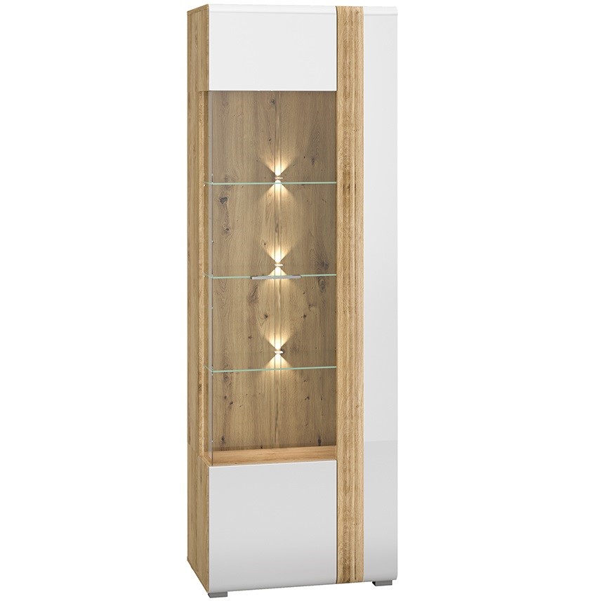 Witryna Adagio 02 Lewy Dąb Castello oferuje cichy domyk, wysokiej jakości materiały oraz podświetlenie witryn dostępne opcjonalnie. To funkcjonalne i solidne rozwiązanie, które idealnie wpisze się w eleganckie wnętrza, oferując stylowy wygląd na lata.