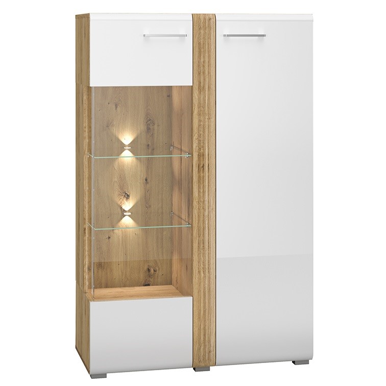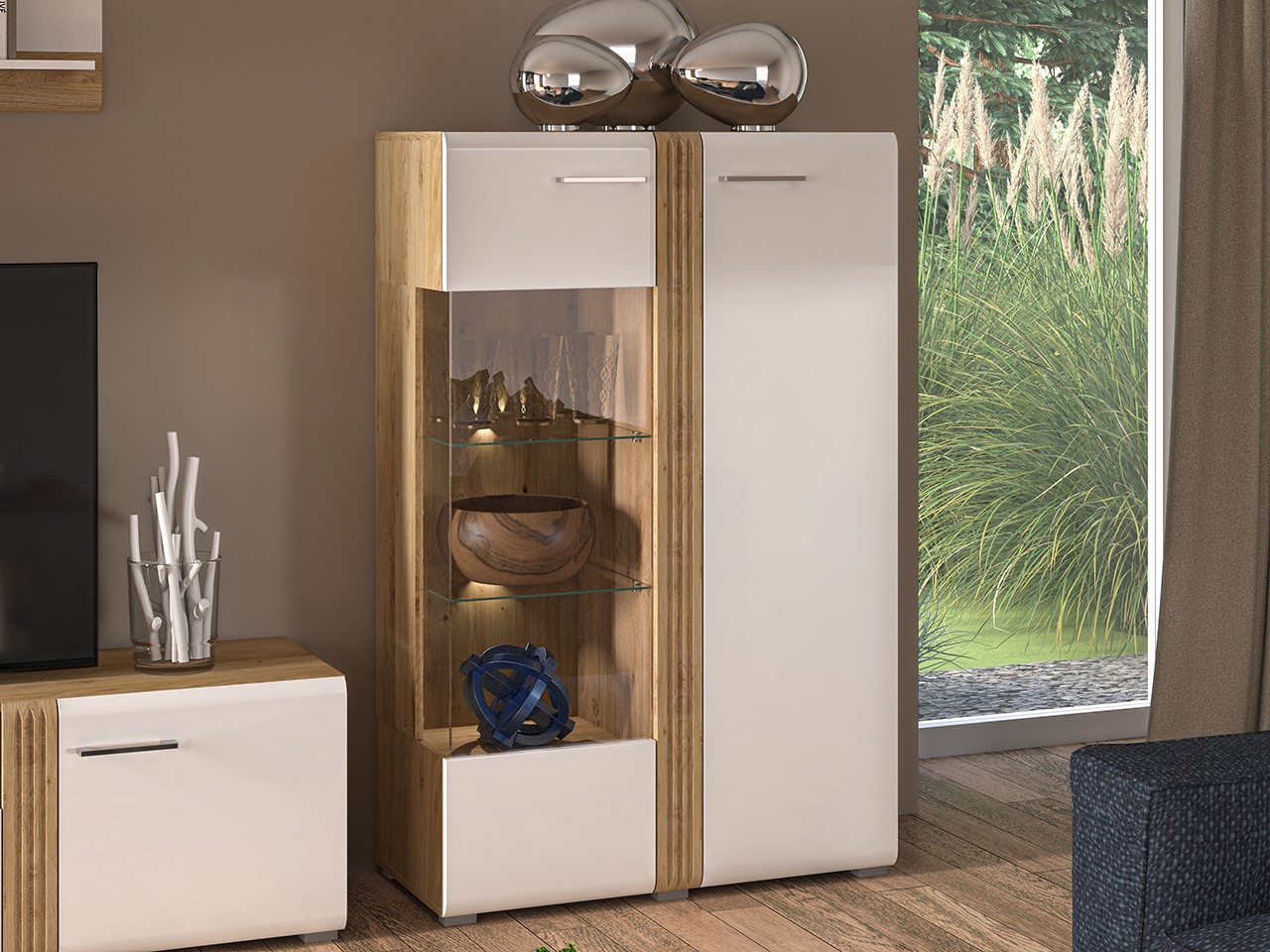 Witryna Adagio 03 Lewy Dąb Castello łączy w sobie klasykę z nowoczesnością, oferując wygodę dzięki cichemu domykowi oraz opcję podświetlenia witryny. To stylowy i praktyczny mebel, który wzbogaci każde wnętrze o wyjątkowy charakter.