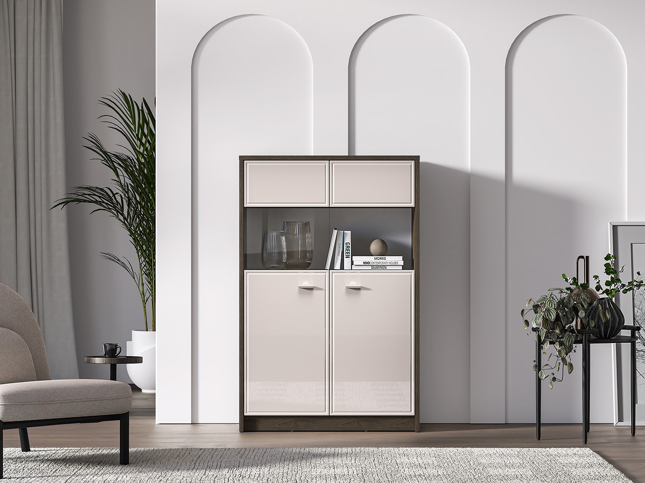 Witryny z serii TOSCANIA świetnie sprawdzą się w salonie, jadalni lub gabinecie. Ich przeszklone drzwi eksponują zastawę, książki lub dekoracje, a zamknięte części pomagają utrzymać porządek. Klasyczny styl, delikatne zdobienia i wybarwienie w ciepłym odcieniu drewna czynią z nich elegancki element każdego wnętrza.
