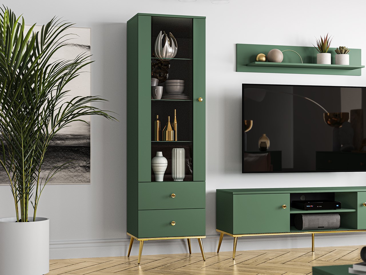 Witryna Forest 01 Labrador 1D2S to solidny mebel o eleganckim wykończeniu, z możliwością podświetlenia witryn w opcji dodatkowej. Wykonana z wysokiej jakości materiałów, idealnie wkomponuje się we współczesne wnętrza.