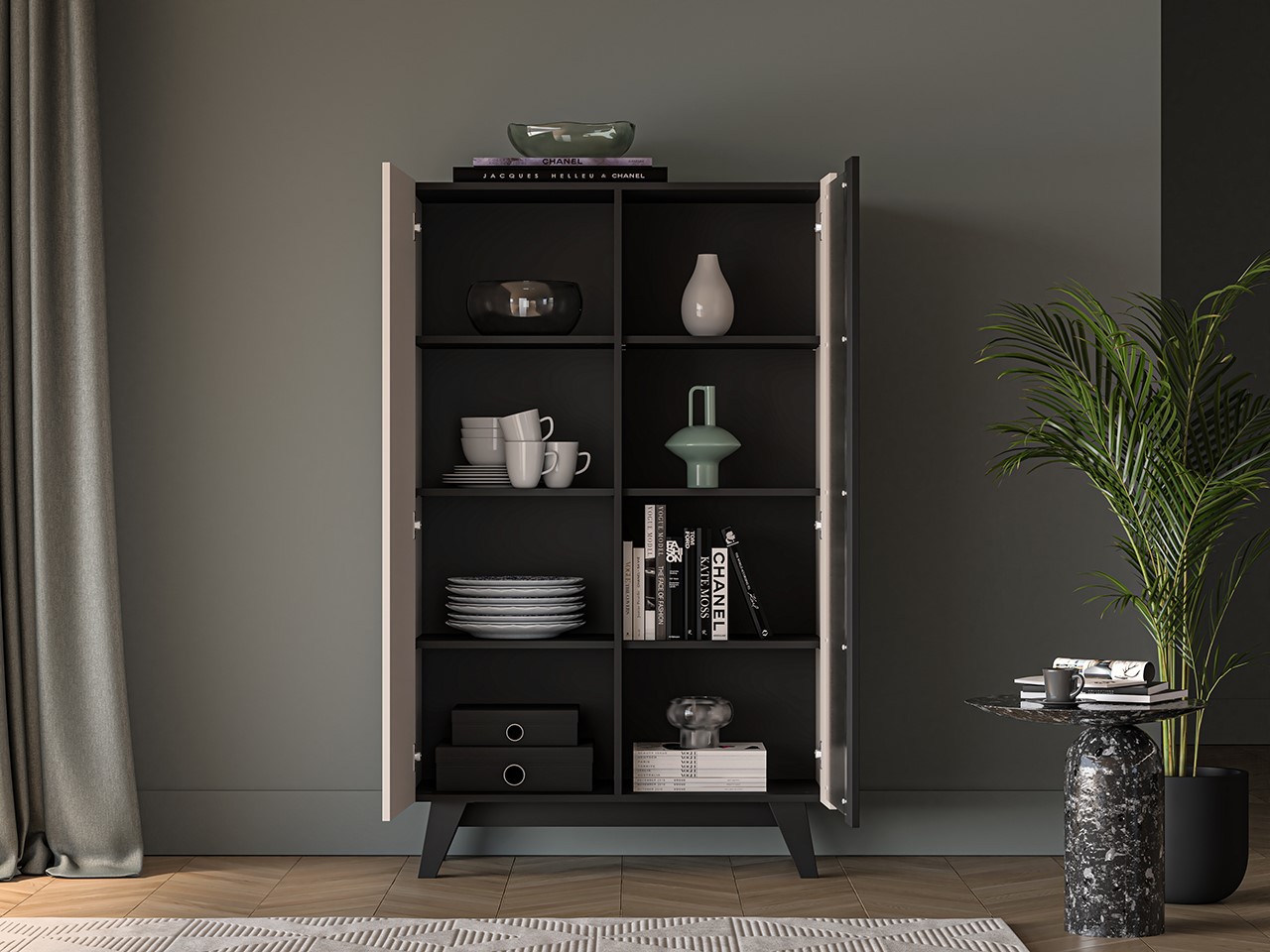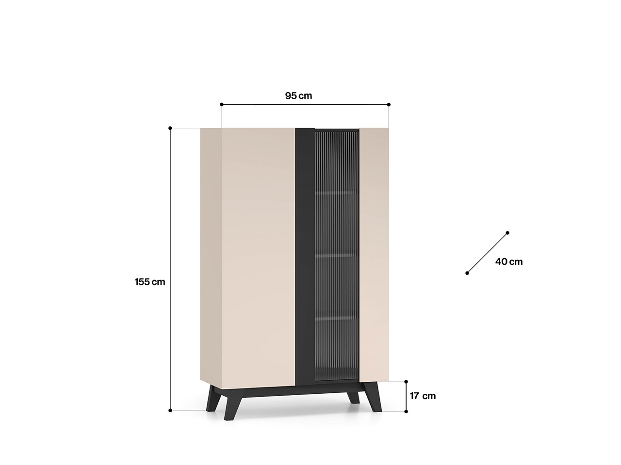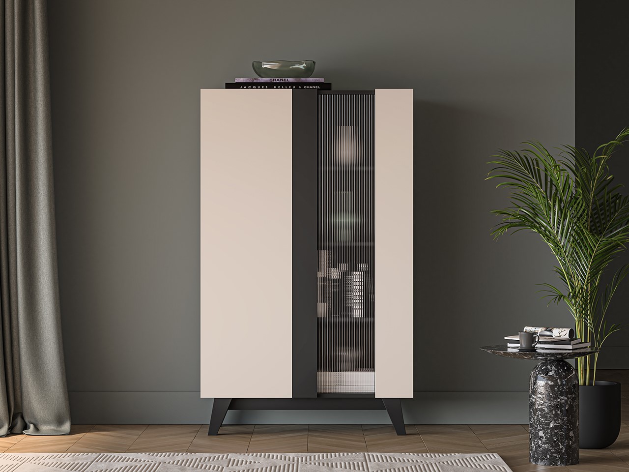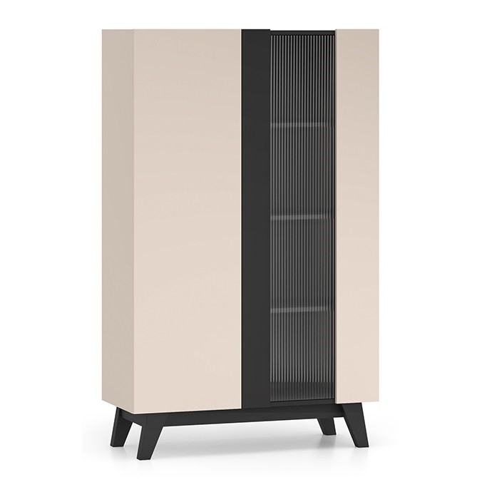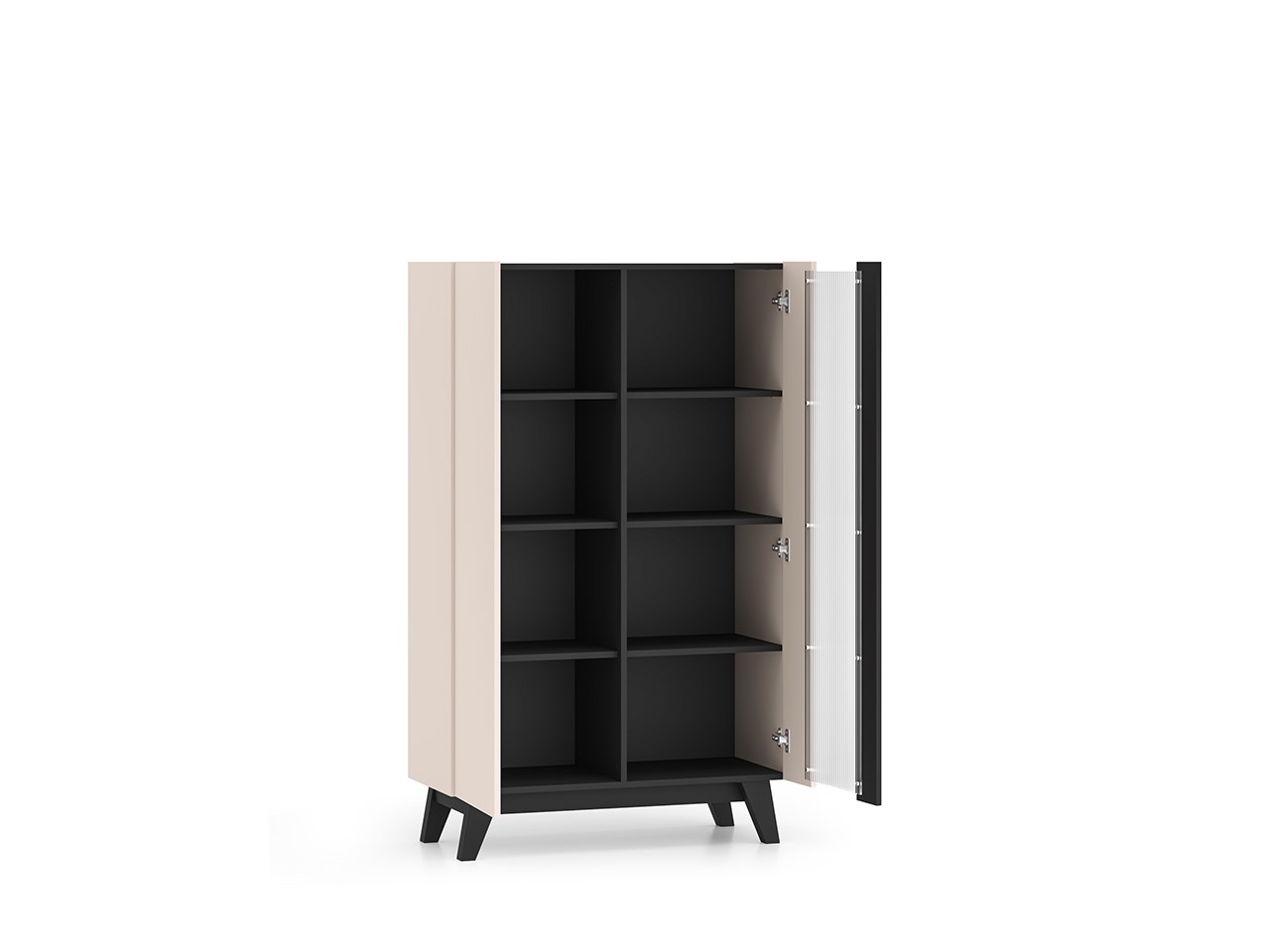 Witryna Freshion 02 to połączenie elegancji i praktyczności. Hartowane szkło w drzwiach eksponuje zawartość, a stylowe nóżki i bezuchwytowe fronty nadają meblowi lekkości i nowoczesnego charakteru.