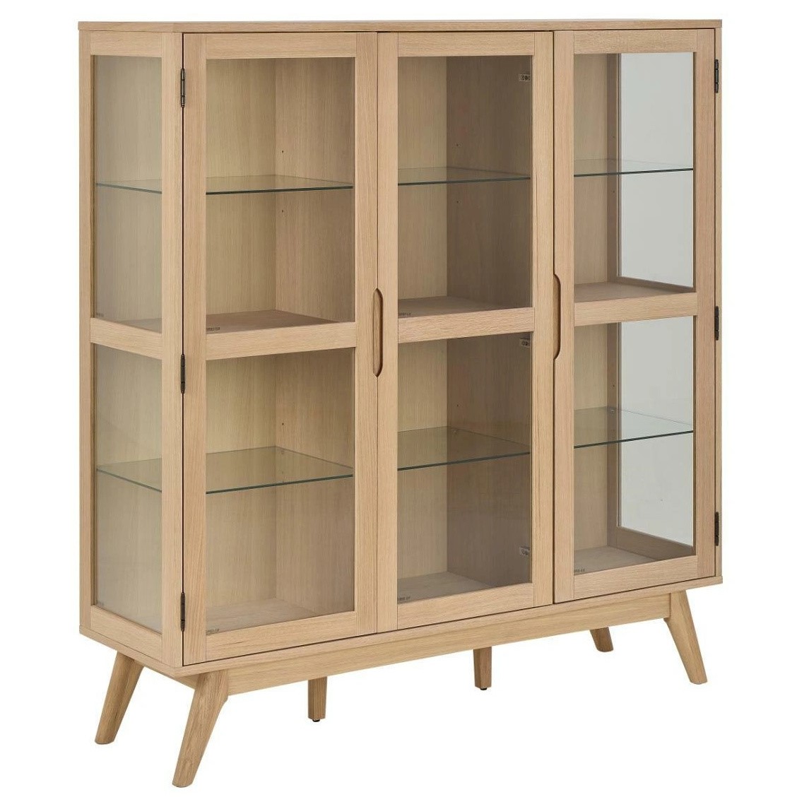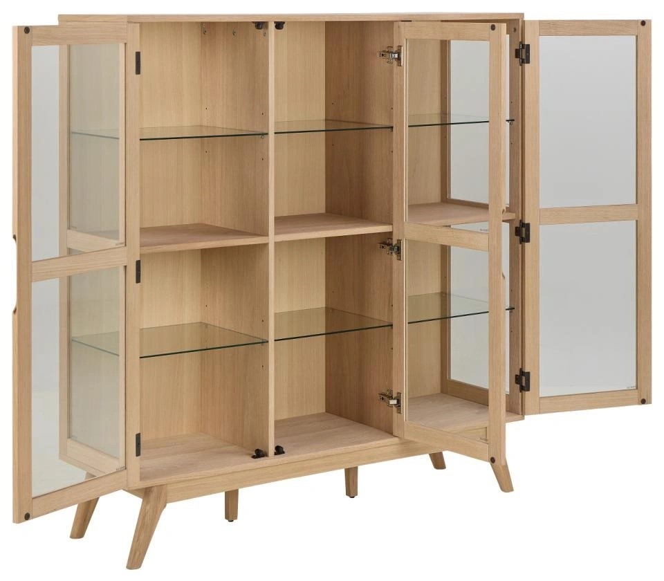 Prezentowana witryna meblowa to elegancki i praktyczny mebel, który doskonale sprawdzi się w salonie, jadalni lub gabinecie. Dzięki przeszklonym drzwiom pozwala efektownie wyeksponować zastawę, dekoracje, książki lub inne przedmioty, jednocześnie chroniąc je przed kurzem. Dzięki nowoczesnemu designowi witryna pasuje zarówno do klasycznych, jak i nowoczesnych wnętrz.
