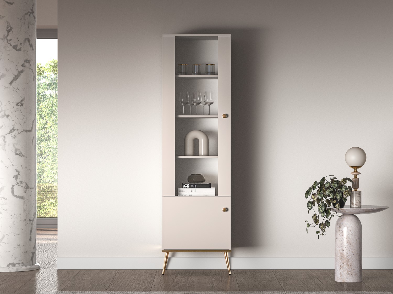 Witryna Selgin 01 to elegancki mebel, który łączy funkcjonalność z nowoczesnym designem. Dzięki systemowi cichego domykania i ergonomicznym uchwytom, użytkowanie jest wyjątkowo komfortowe. Wysokie nóżki nadają lekkości i ułatwiają utrzymanie czystości pod meblem.