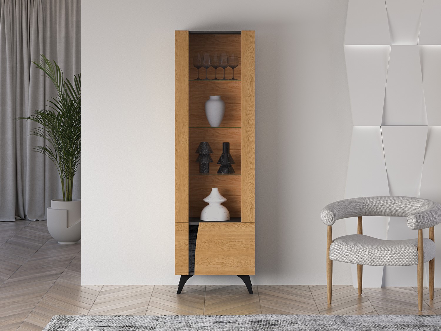 Witryny z kolekcji TOSCANIA to eleganckie meble w stylu prowansalskim, stworzone z myślą o estetycznej ekspozycji i przechowywaniu. Wyposażone w przeszklone fronty i ozdobne listwy, idealnie prezentują się w jadalni lub salonie. Jasne wykończenie w kolorze bieli oraz stylizowane uchwyty wprowadzają do wnętrza przytulny, rustykalny klimat. Można je zestawić razem lub wykorzystywać pojedynczo, w zależności od potrzeb i aranżacji.