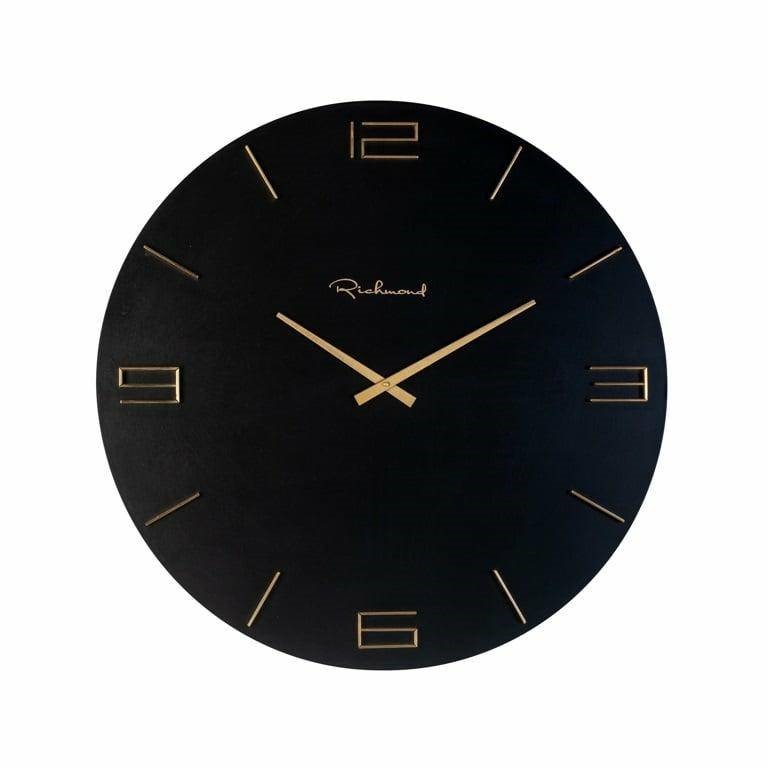 Zegar BRYAM czarny to wyjątkowy zegar ścienny, który z pewnością wzbogaci estetykę każdego wnętrza. Jego okrągła, czarna tarcza w połączeniu z mosiężnymi elementami tworzy szykowny i współczesny wygląd.