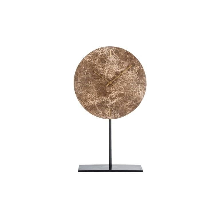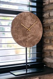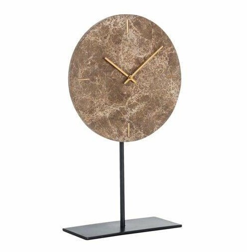 Zegar stołowy Brett to wyjątkowy element dekoracyjny, który wyróżnia się swoim luksusowym designem i wysoką jakością wykonania. Ten elegancki zegar oparty na czarnej metalowej podstawie i wykonany z marmuru w brązowej tonacji stanowi doskonałą ozdobę każdego wnętrza.