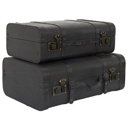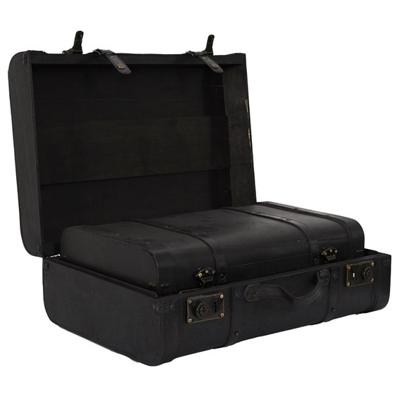 Zestaw 2 dekoracyjnych kufrów Vintage w kolorze czarnym to stylowy i funkcjonalny dodatek do każdego wnętrza. Wykonane z wysokiej jakości materiałów, kufry charakteryzują się eleganckim, retro designem, który nawiązuje do klasycznych podróżnych waliz. Czarny kolor dodaje im szyku i uniwersalności, pasując do różnych aranżacji wnętrz. Kufry są nie tylko estetyczne, ale również praktyczne – idealne do przechowywania różnych drobiazgów, od ubrań po akcesoria. Solidne zamknięcia i wygodne uchwyty zapewniają wygodę użytkowania. Zestaw ten to doskonały wybór dla miłośników vintage, którzy cenią elegancję i funkcjonalność.