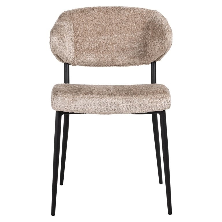 Kształtne oparcie oraz siedzisko wykonano z pięknej, jasnej tkaniny o nazwie Sheep 01 nature.