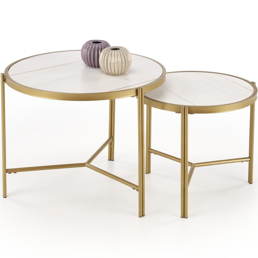 Zestaw 2 Ław to wyrafinowane i stylowe rozwiązanie, które dodaje elegancji każdemu wnętrzu. Białe marmurowe blaty w połączeniu z efektownymi złotymi nogami tworzą zestaw, który zachwyca zarówno swoją funkcjonalnością, jak i estetyką.