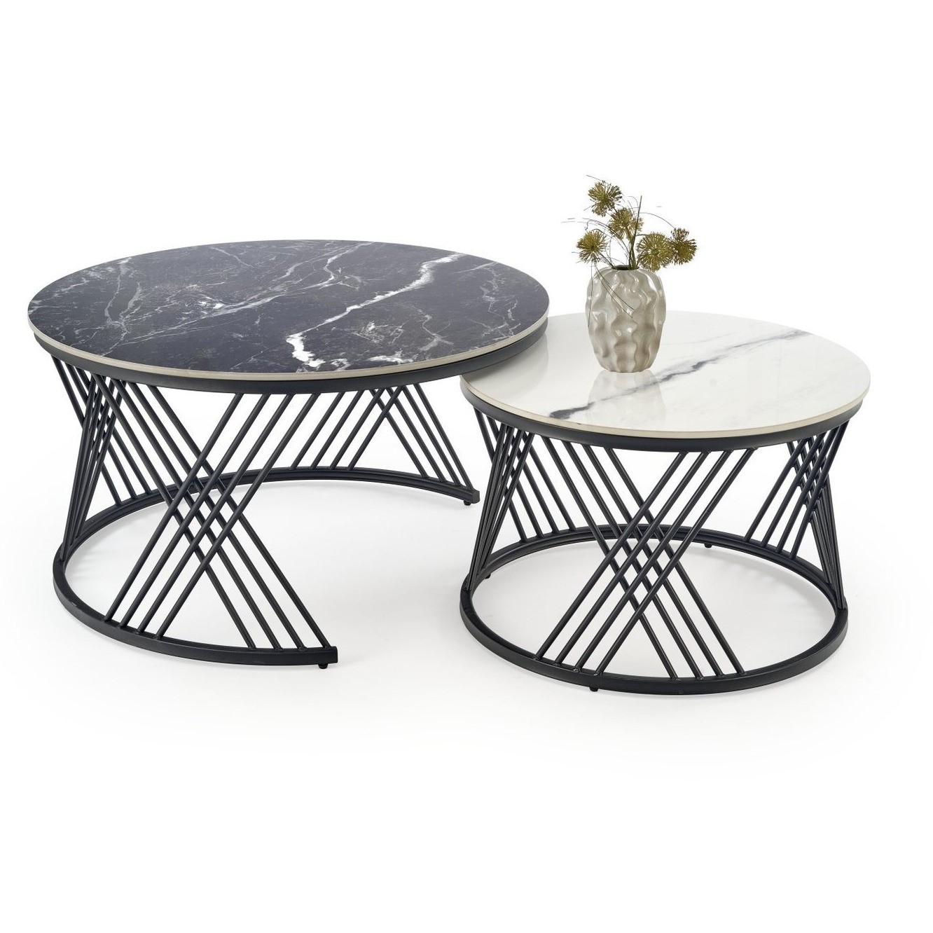 Zestaw 2 Ław FLAMINGO 80x80cm Czarny/Biały Marmur