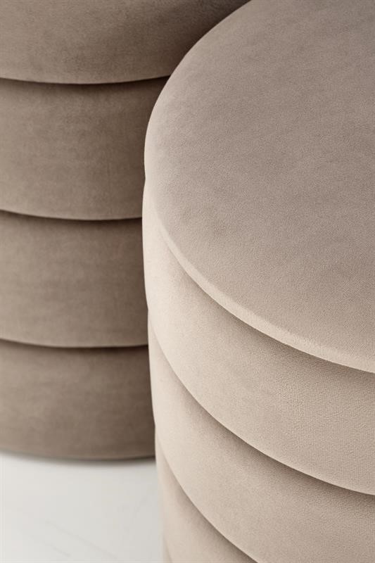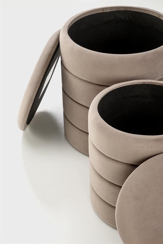 Pufy w eleganckim beżowym kolorze doskonale komponują się z różnorodnymi stylami aranżacji wnętrz, dodając im ciepła i klasy. Funkcja pojemnika pozwala na przechowywanie różnych przedmiotów, co jest szczególnie przydatne w mniejszych przestrzeniach.