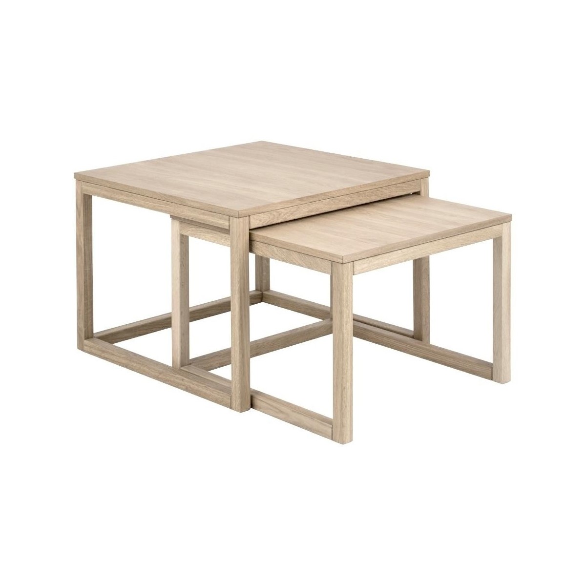 Zestaw 2 stolików Cornus w bielonym dębie to elegancki i funkcjonalny dodatek do każdego wnętrza. Wykonane z wysokiej jakości materiałów, stoliki łączą nowoczesny design z klasycznym stylem, co sprawia, że doskonale komponują się zarówno w salonach, jak i w przestrzeniach biurowych. Bielony dąb nadaje im świeżości i lekkości, a jednocześnie pozwala na łatwe zestawienie z różnorodnymi kolorami i stylami aranżacyjnymi. Zestaw składa się z dwóch stolików w różnych rozmiarach, co umożliwia tworzenie atrakcyjnych kompozycji, a także elastyczne dopasowanie do potrzeb użytkowników.