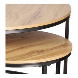 Zestaw stolików Ruth to połączenie nowoczesnego designu i naturalnych materiałów. Wykonane z trwałego drewna w kolorze naturalnym i czarnym, doskonale komponują się z różnymi stylami wnętrz. Świetnie sprawdzą się w salonie, sypialni lub biurze jako stoliki kawowe lub dekoracyjne.