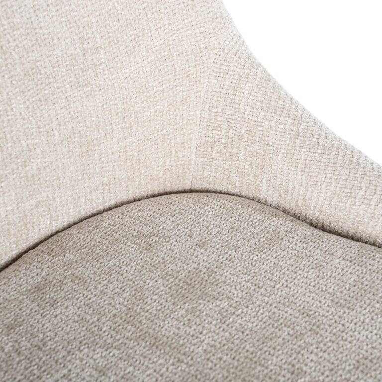 Beżowa, przyjemna w dotyku tkanina szenilowa doda Twojemu wnętrzu lekkości i świeżości, a kubełkowe siedzisko z metalową czarną podstawą zapewnią wygodę