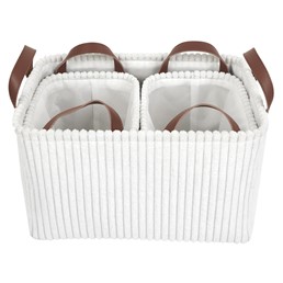 Tekstylne kosze dekoracyjne to praktyczne rozwiązanie do organizacji przestrzeni, które jednocześnie wprowadza do wnętrza ciepło i przytulność. Różnorodne faktury tkanin podkreślają ich dekoracyjny charakter, sprawiając, że świetnie prezentują się w salonie, sypialni lub pokoju dziecięcym. Idealne do przechowywania koców, poduszek lub drobiazgów.