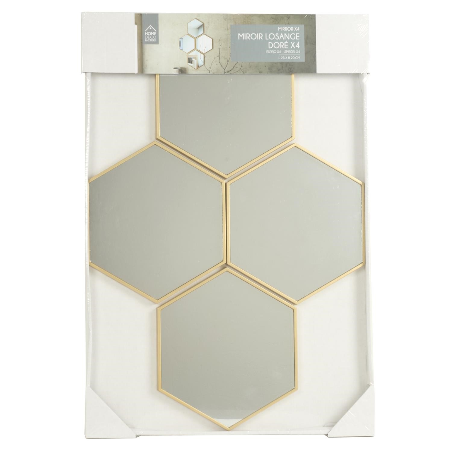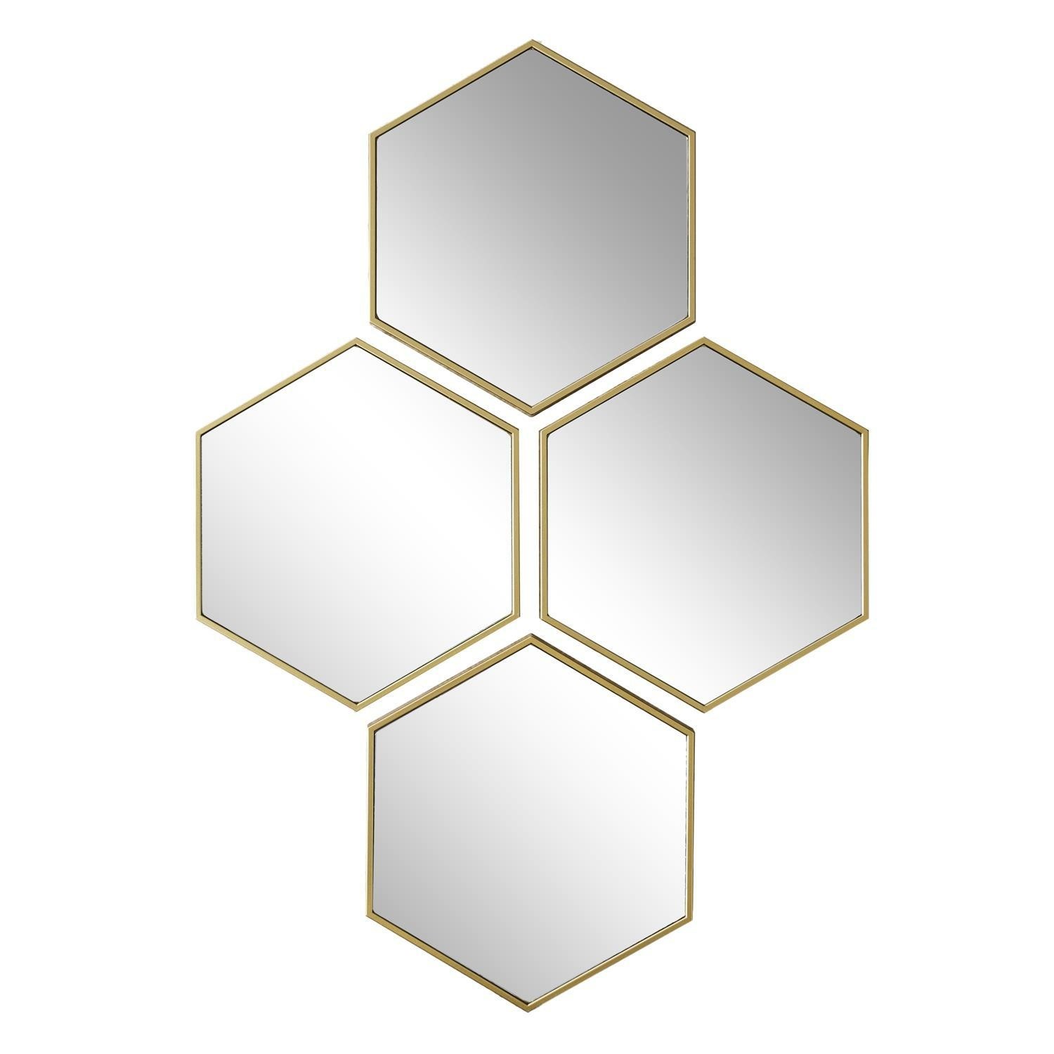 Zestaw czterech luster Diamond to designerski sposób na urozmaicenie ściany. Lekkie i eleganckie ramy w złotym kolorze nadają wnętrzu blasku i stylu glamour. Lustra w różnych geometrycznych kształtach można zawiesić razem lub rozdzielić w różnych częściach pomieszczenia, tworząc niepowtarzalną aranżację.