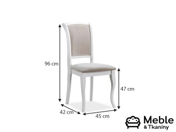 Styl francuski bije rekordy popularności! Ostatnimi czasy króluje bowiem nie tylko retro, ale też modern classic, czyli unowocześnione odwzorowanie tego, co w klasyce najlepsze. Elegancka forma stelażu uzyskana została za pomocą malowanego na biało drewna. Ponadto krzesło posiada wygodne, profilowane oparcie i sporych rozmiarów siedzisko, a oba te elementy pokryte zostały piękną tapicerką w kolorze beżowym.