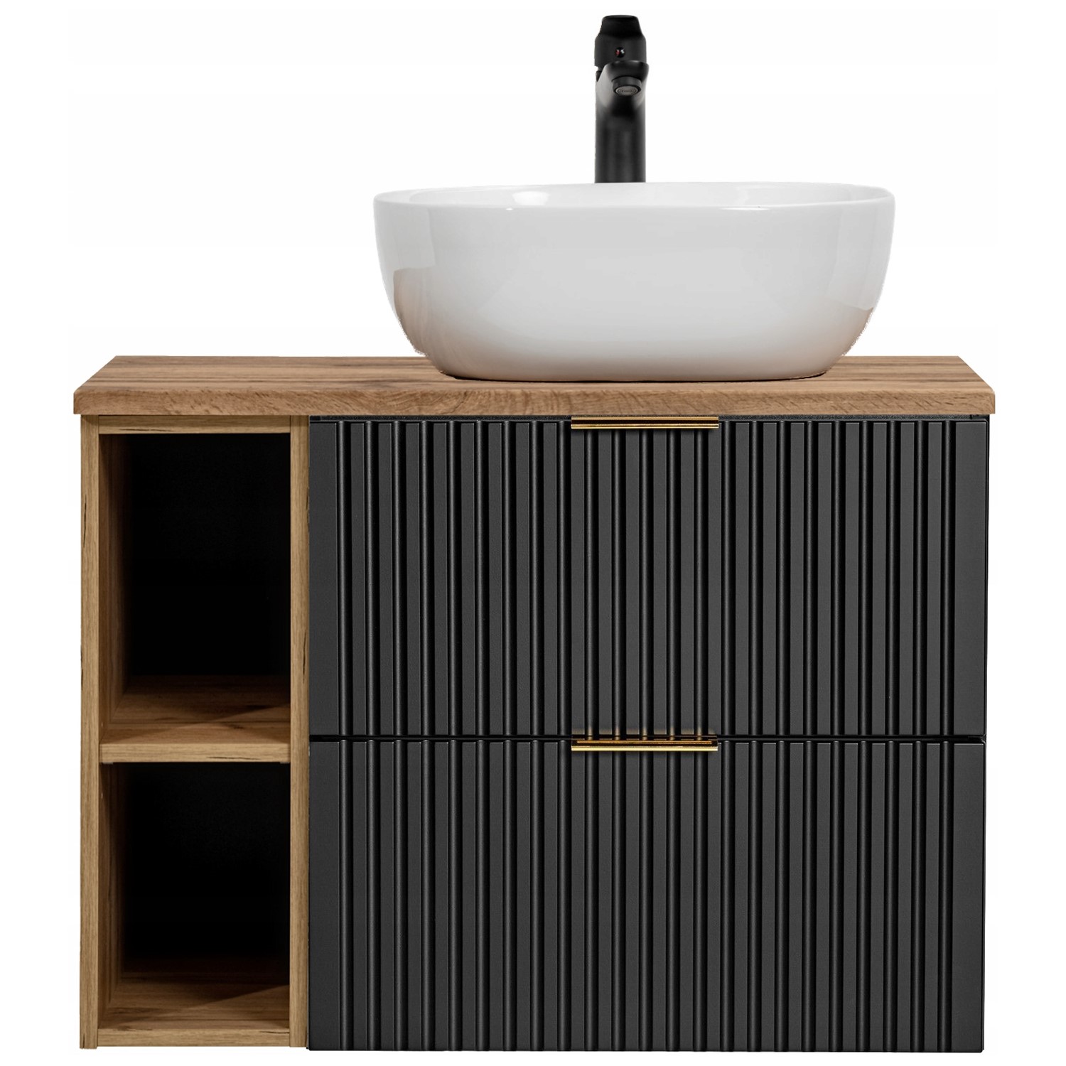 Zestaw szafki łazienkowej z regałem, blatem oraz umywalką to idealne rozwiązanie dla osób ceniących elegancję oraz praktyczne wykorzystanie przestrzeni. Dzięki przemyślanej konstrukcji i stylowemu designowi, zestaw ten doda łazience wyjątkowego charakteru i uporządkuje przestrzeń. Szafki wykonane są z trwałej płyty laminowanej, odpornej na wilgoć i uszkodzenia mechaniczne, co zapewnia długowieczność mebli. Blat wykonany z wysokiej jakości materiałów, jest odporny na zarysowania i łatwy w utrzymaniu czystości, co czyni go praktycznym wyborem do łazienki. Szafki wyposażone są w przestronne szuflady, które umożliwiają przechowywanie kosmetyków, ręczników oraz innych niezbędnych akcesoriów łazienkowych, utrzymując je w porządku i zawsze pod ręką.