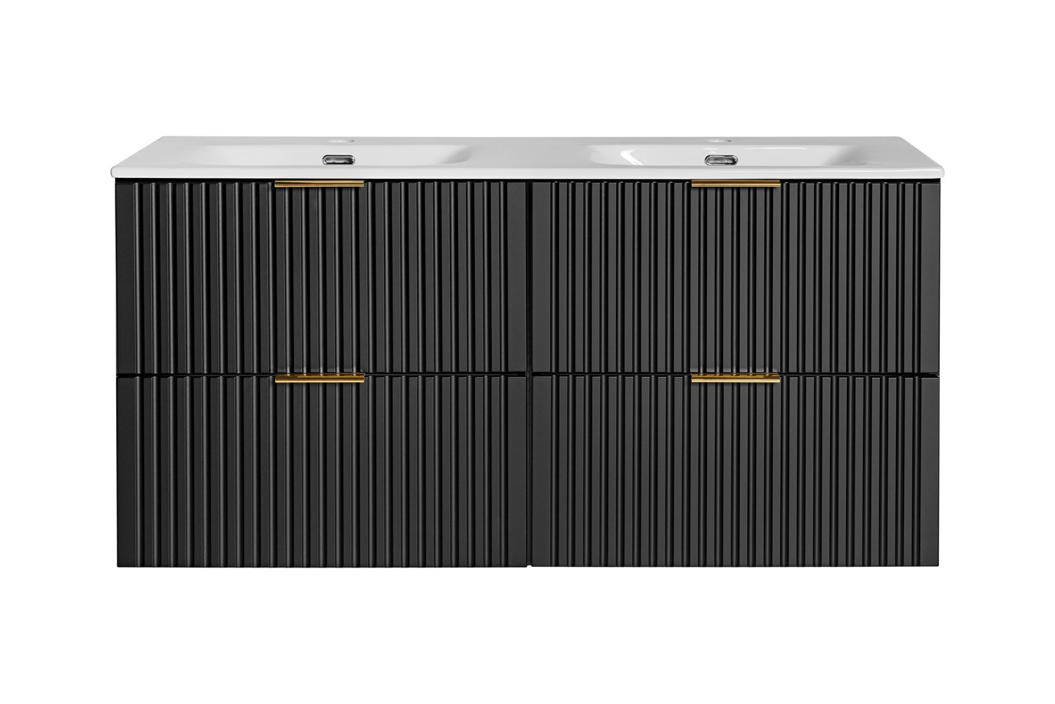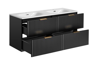 Zestaw szafek z umywalką z podwójną misą to idealne rozwiązanie dla osób ceniących elegancję oraz praktyczne wykorzystanie przestrzeni. Ryflowane fronty są szczególnie atrakcyjnym i wszechstronnym elementem wzorniczym, który nadaje meblom unikalny charakter. Wykonana jest z najwyższej jakości materiałów, które gwarantują trwałość i odporność na codzienne użytkowanie. Meble ADEL wykonane są z najwyższej jakości materiałów, takich jak płyta laminowana i MDF, co gwarantuje ich trwałość i odporność na wilgoć. Solidna konstrukcja oraz precyzyjne wykończenie sprawiają, że zestaw ten będzie służył przez wiele lat, zachowując swój estetyczny wygląd.