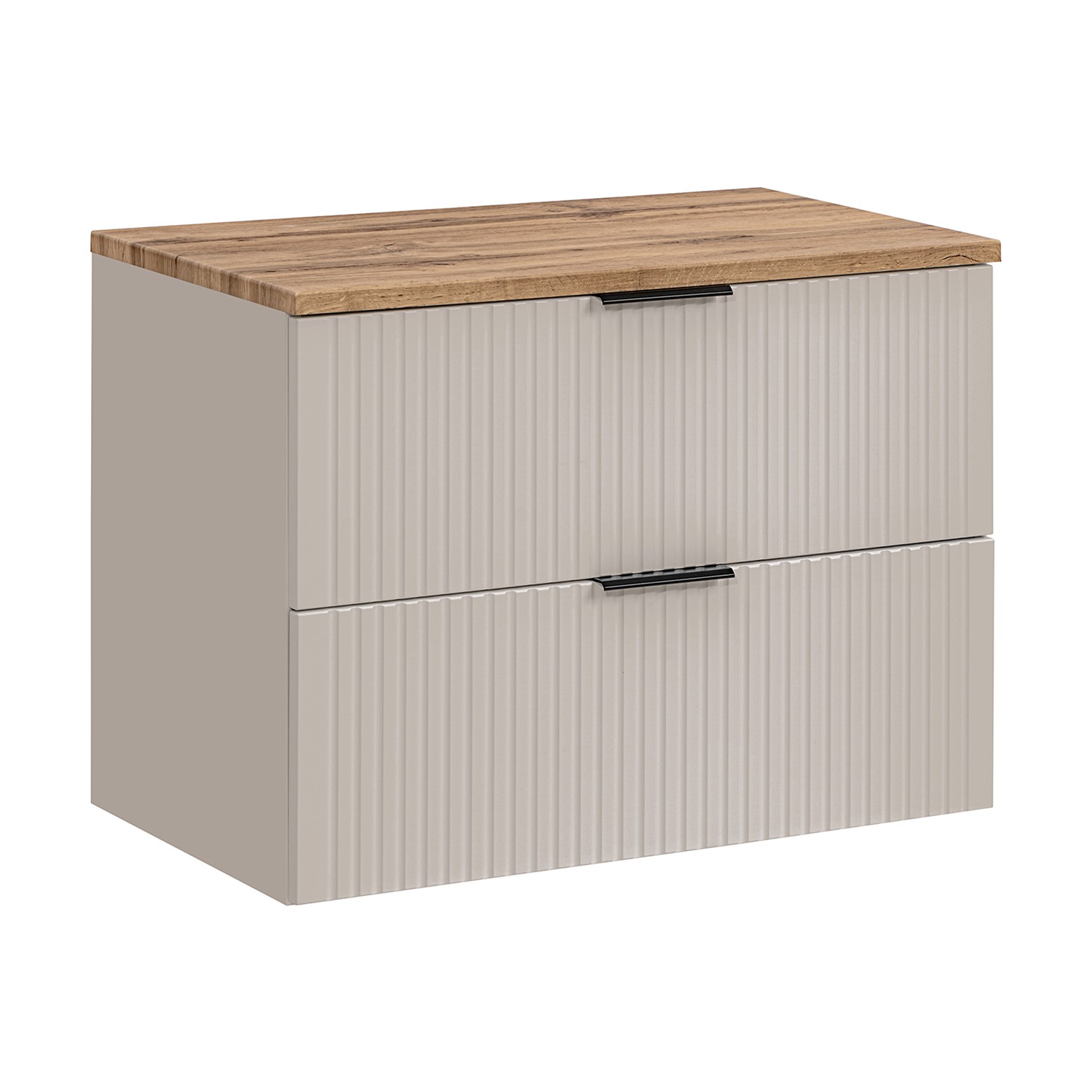 Prezentowana kolekcja mebli to nowoczesne połączenie elegancji i funkcjonalności, zaprojektowane z myślą o najbardziej wymagających użytkownikach. Wyróżnia się unikalnymi pionowymi frezowaniami we frontach i korpusie, które nadają meblom niepowtarzalny charakter i dynamikę. Dzięki tej wyjątkowej strukturze, meble wprowadzają do łazienki ruch i płynność, tworząc harmonijną i stylową przestrzeń. Nowoczesna kolorystyka oraz wyrafinowane detale czynią ją wyjątkową propozycją do każdej łazienki. Zestawy mebli wykonane są z wysokiej jakości materiałów, takich jak płyta laminowana i MDF, co zapewnia ich trwałość i odporność na wilgoć. Starannie dobrane komponenty oraz precyzyjne wykończenie gwarantują, że meble te będą służyć przez wiele lat, zachowując swój piękny wygląd i funkcjonalność. W zestawie znajduje się szafka z blatem.