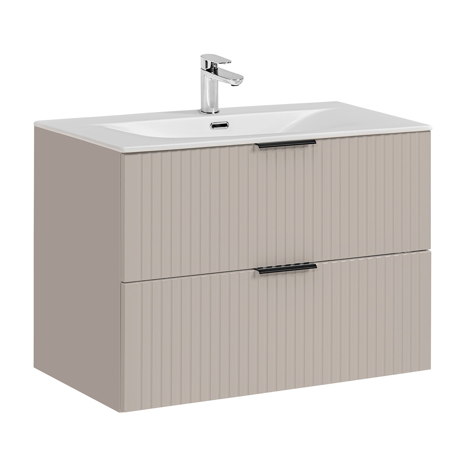 Prezentowana kolekcja mebli to nowoczesne połączenie elegancji i funkcjonalności, zaprojektowane z myślą o najbardziej wymagających użytkownikach. Wyróżnia się unikalnymi pionowymi frezowaniami we frontach i korpusie, które nadają meblom niepowtarzalny charakter i dynamikę. Dzięki tej wyjątkowej strukturze, meble wprowadzają do łazienki ruch i płynność, tworząc harmonijną i stylową przestrzeń. Nowoczesna kolorystyka oraz wyrafinowane detale czynią ją wyjątkową propozycją do każdej łazienki. Zestawy mebli wykonane są z wysokiej jakości materiałów, takich jak płyta laminowana i MDF, co zapewnia ich trwałość i odporność na wilgoć. Starannie dobrane komponenty oraz precyzyjne wykończenie gwarantują, że meble te będą służyć przez wiele lat, zachowując swój piękny wygląd i funkcjonalność. W zestawie znajduje się szafka z umywalką.